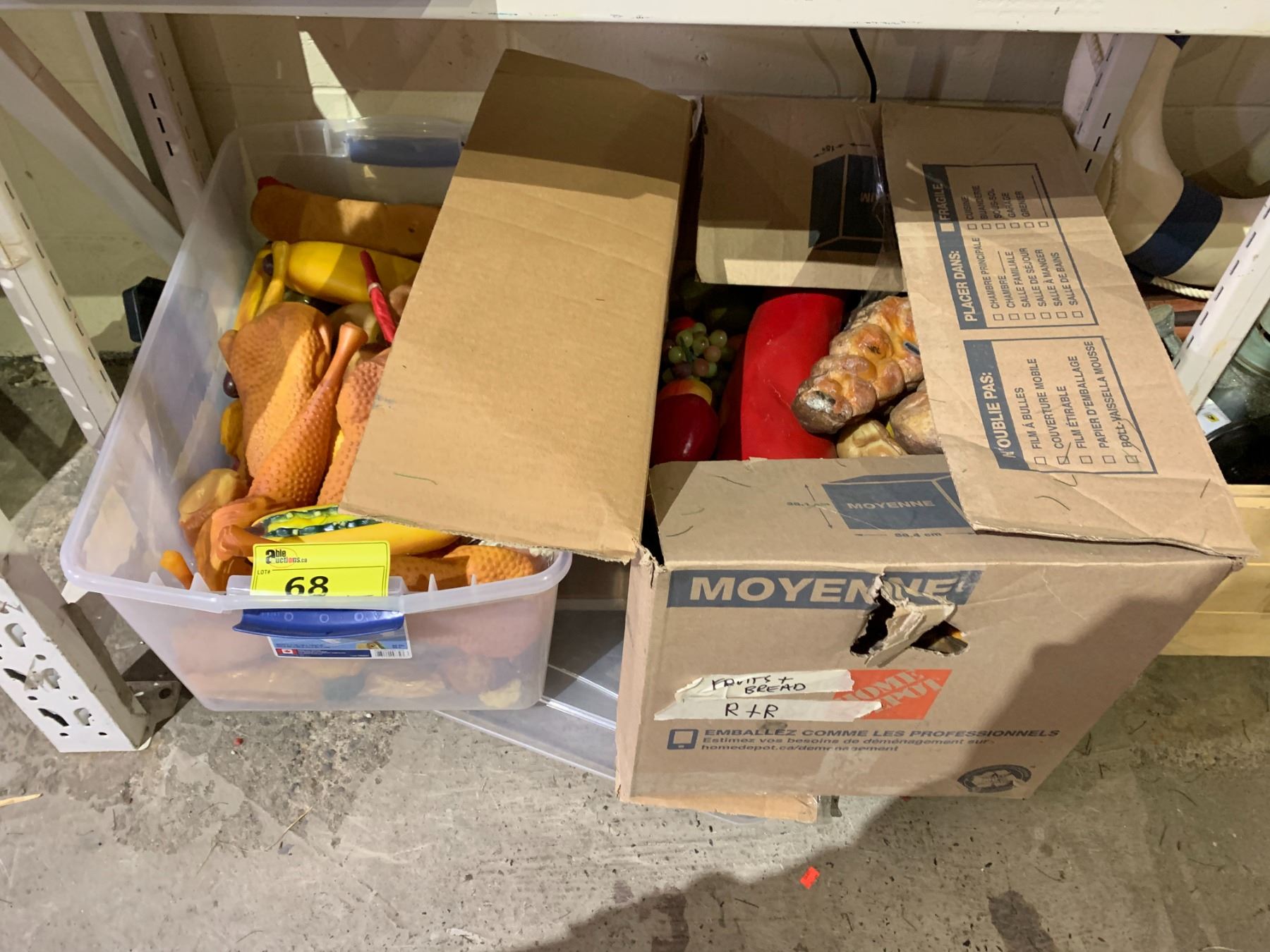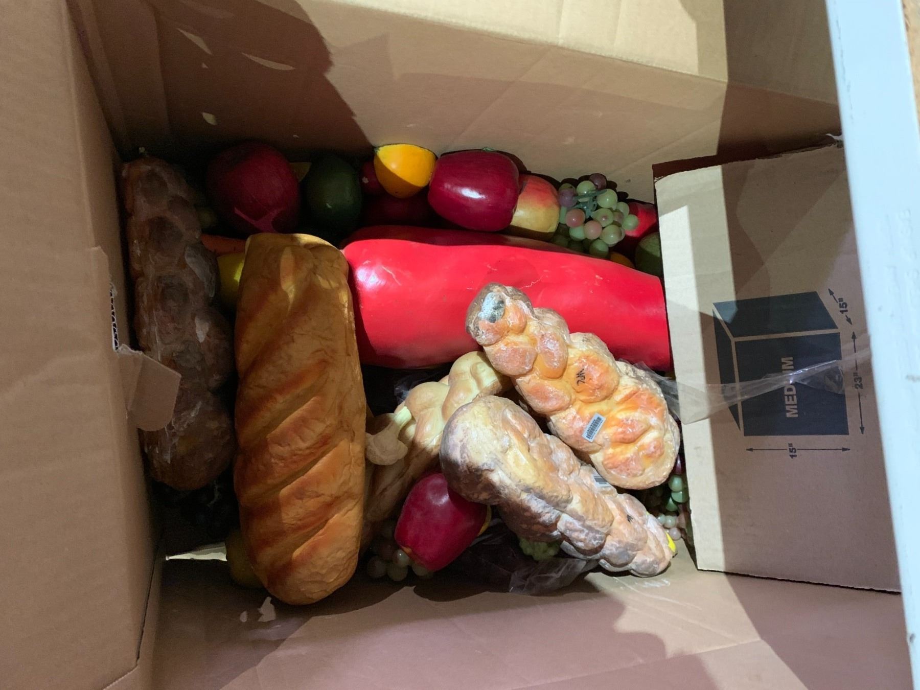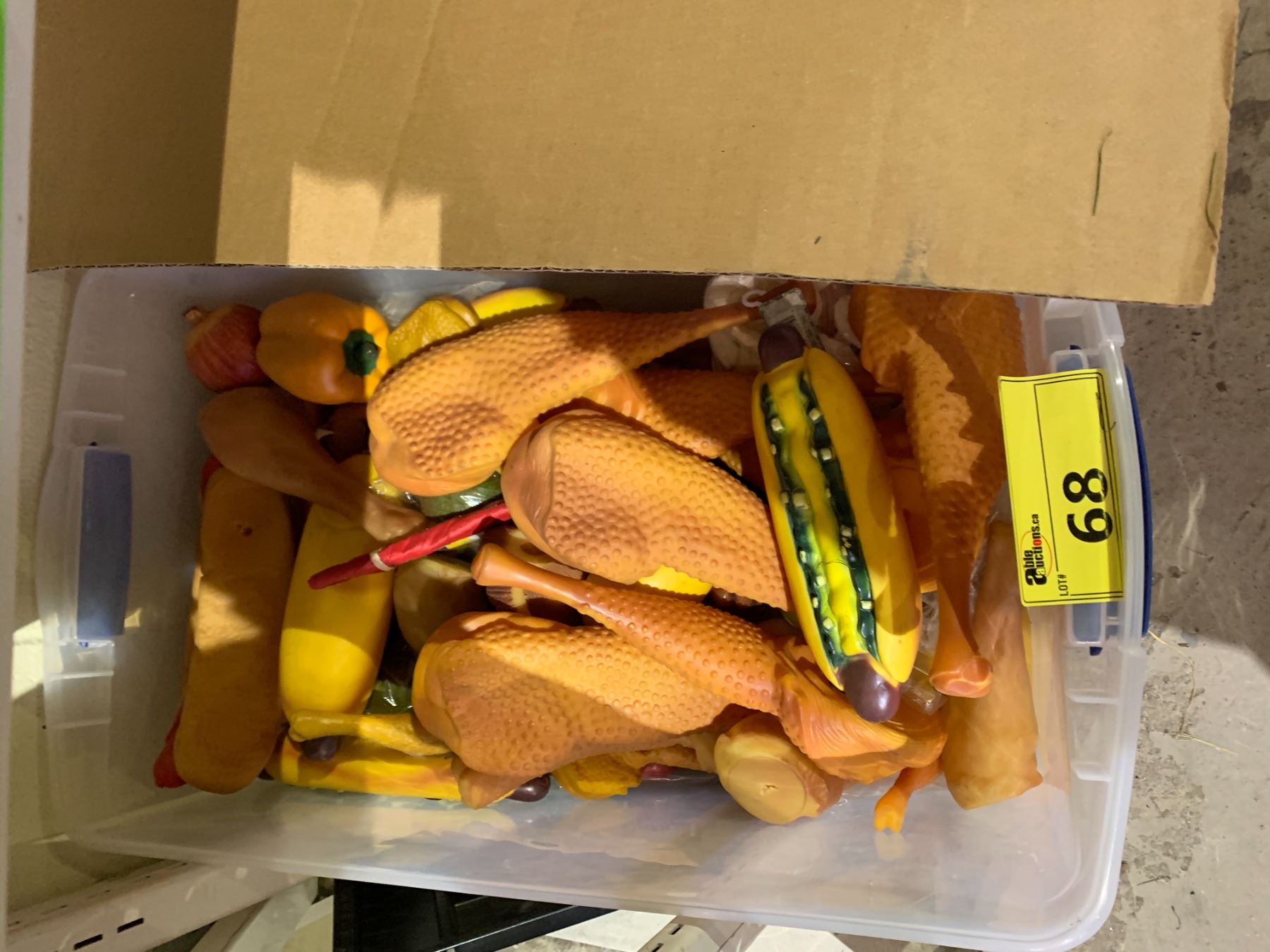 BIN & BOX OF ASSORTED FAKE FOOD