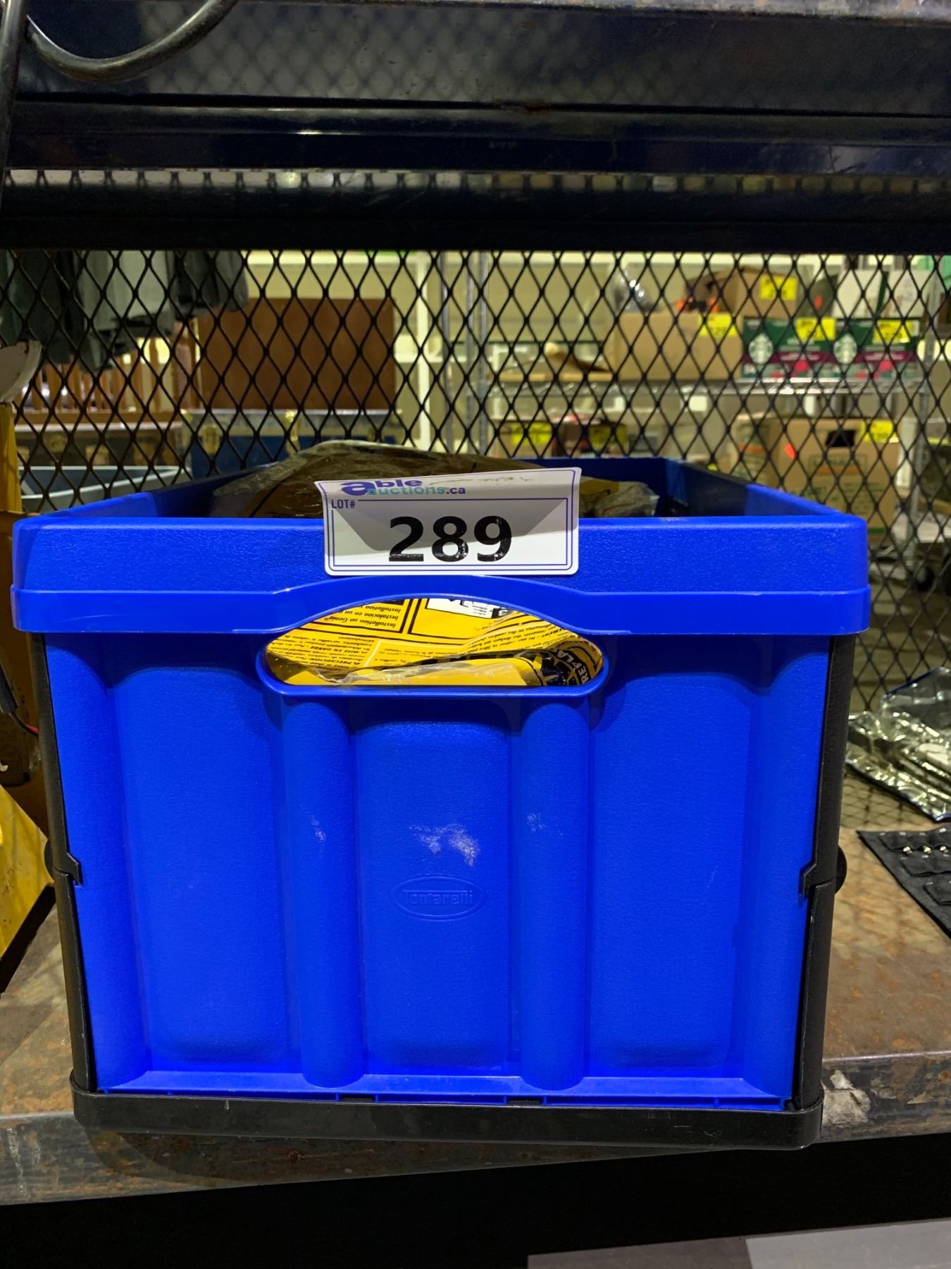 BIN OF ASSORTED CLEANING PRODUCTS INCLUDING; LYSOL WIPES, HAND SOAP, WINDEX & MORE