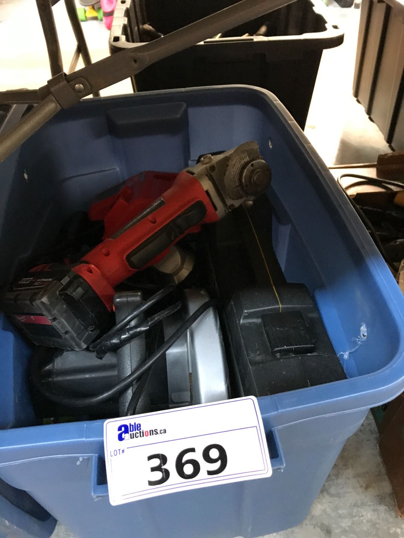 BIN OF ASSORTED HAND AND POWER TOOLS