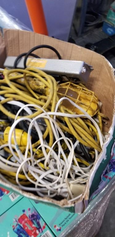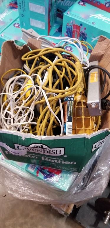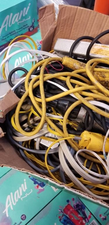 BIN OF EXTENSION CORDS AND POWER BARS