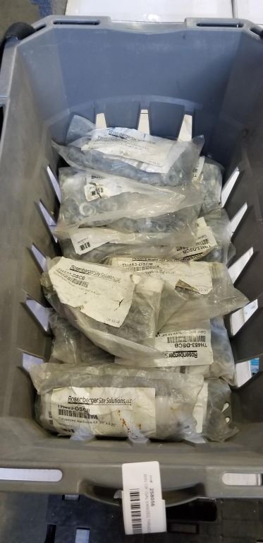 BIN OF GALVANIZED THREADED RODS WITH NUTS AND WASHERS