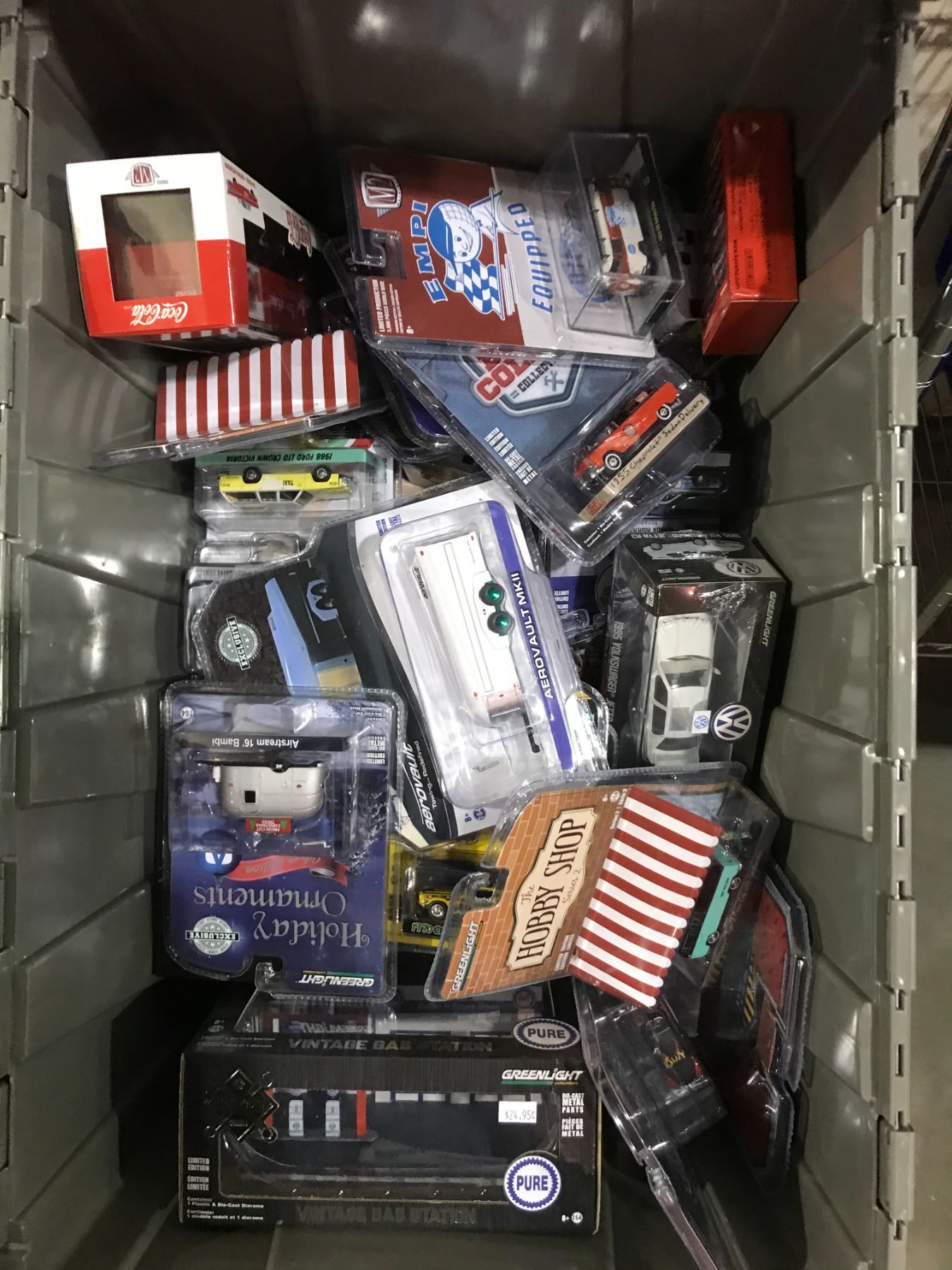 BIN OF GREENLIGHT & ASSORTED MODEL CARS (BIN NOT INCLUDED)
