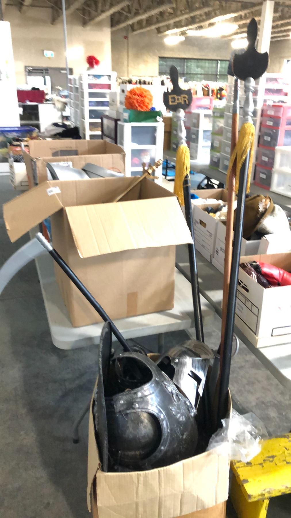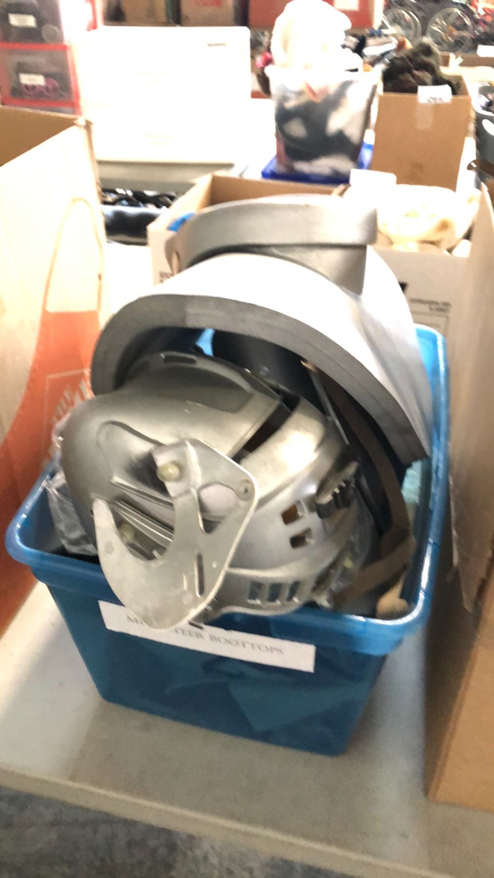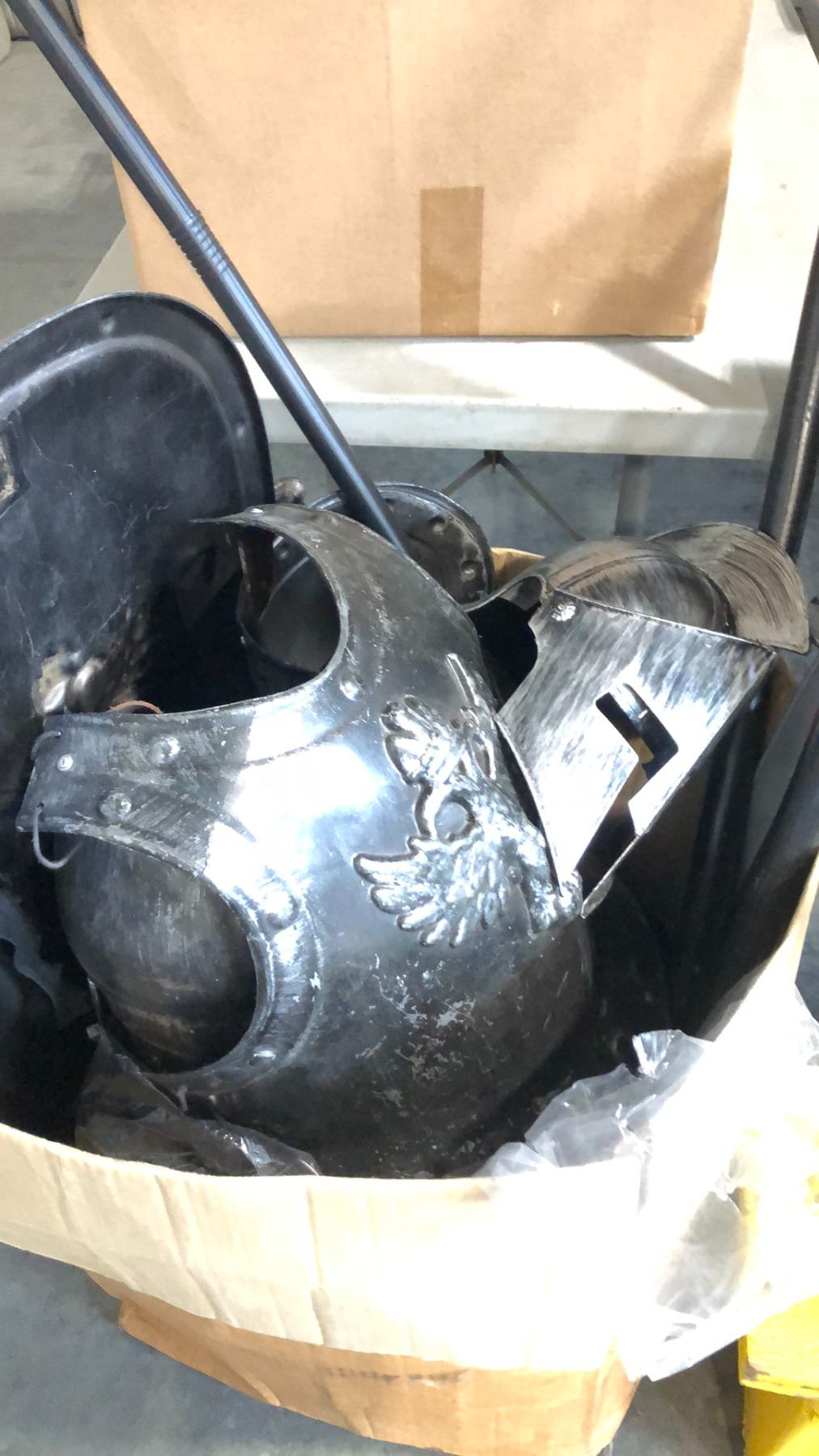 BIN OF MIXED ARMOUR, HATS, WEAPONRY AND MORE