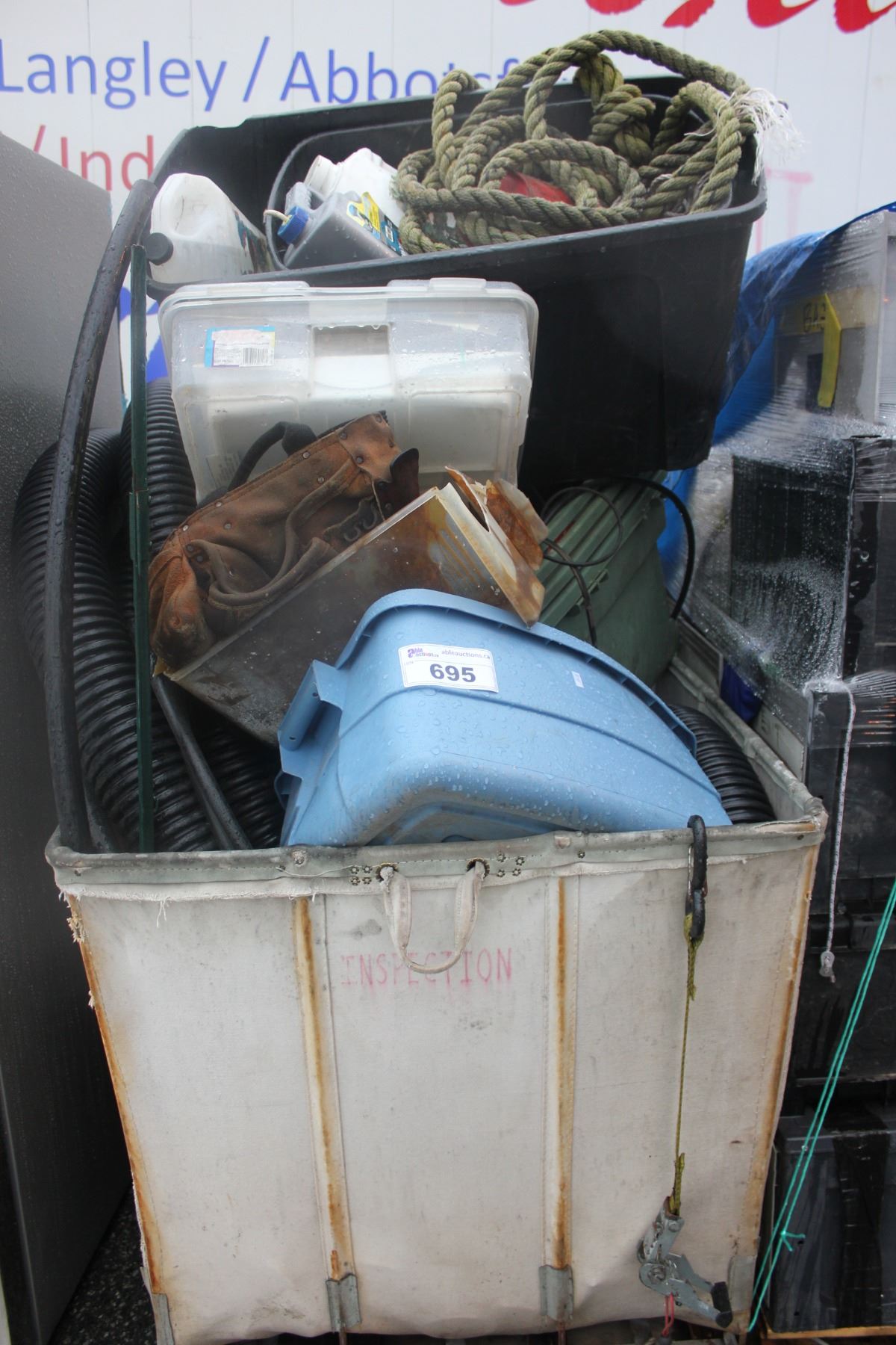 BIN OF TOOLS, CONTAINERS, AND MORE MISC. ITEMS