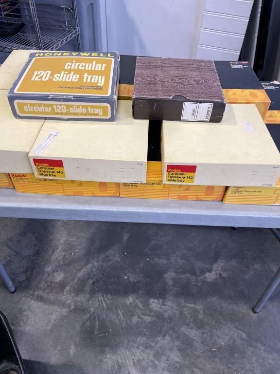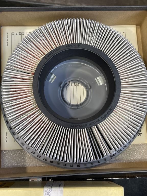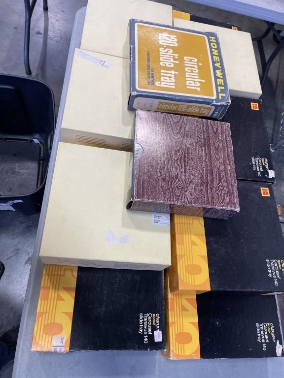 BIN OF VINTAGE KODAK SLIDE CAROUSELS