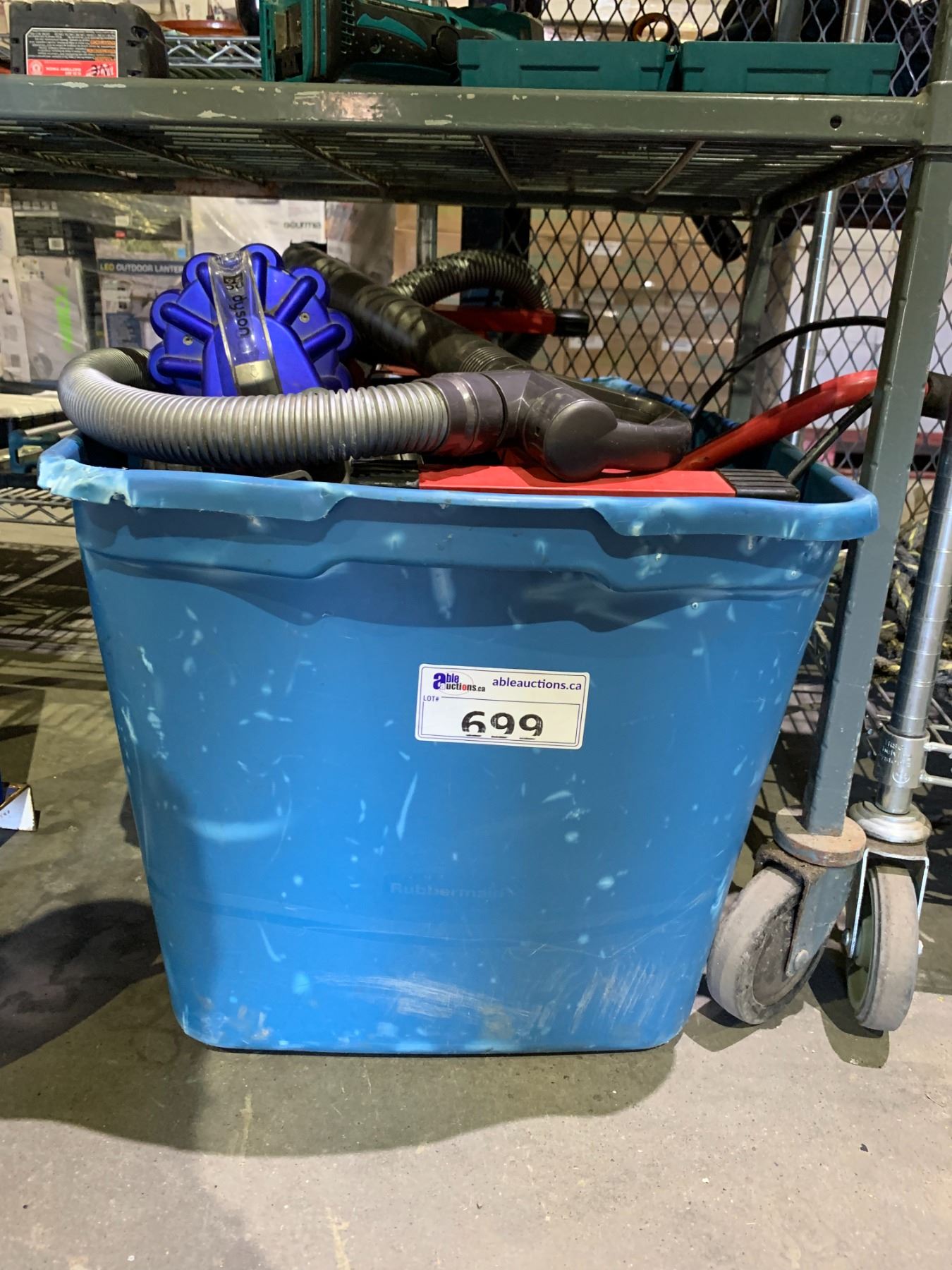 BIN WITH DYSON VACUUM, AND WORKLIGHTS