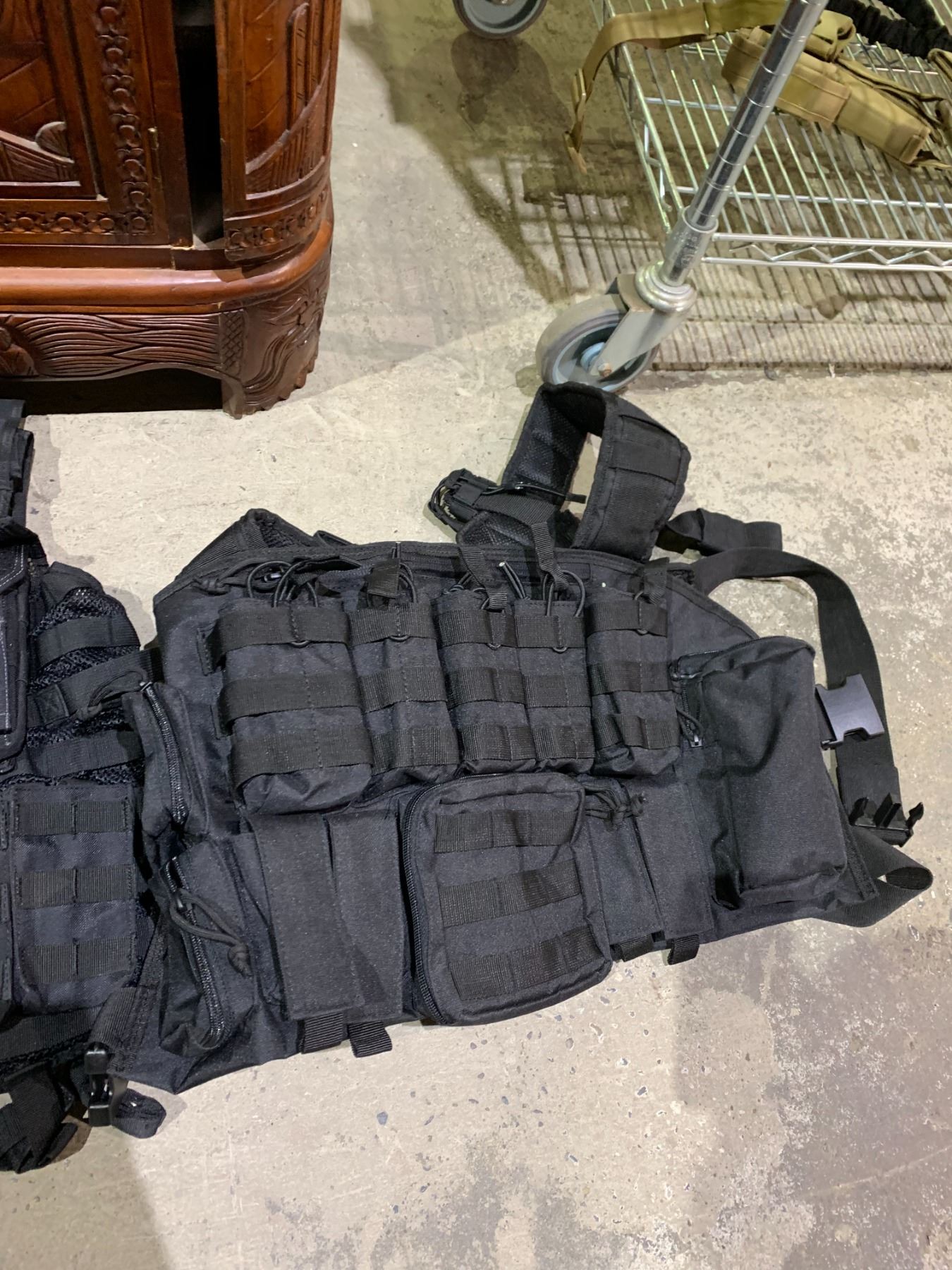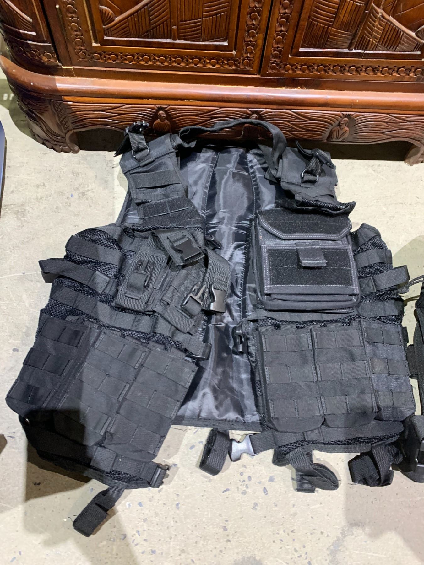 BIN WITH TACTICAL VESTS AND HOLSTERS