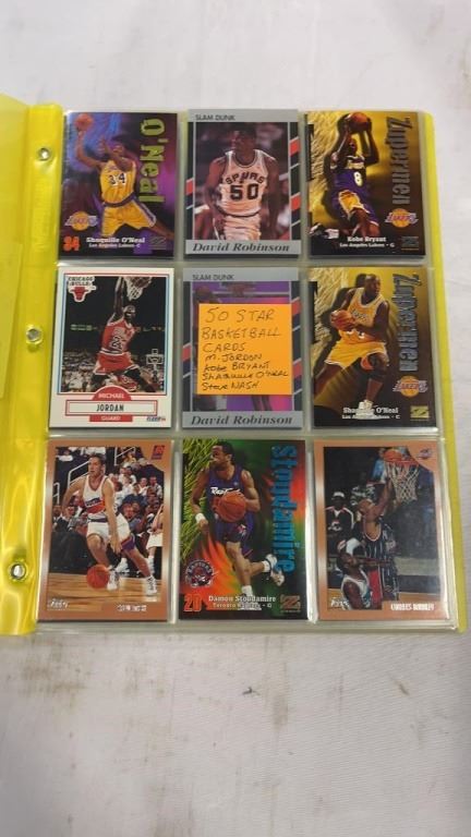 BINDER OF 50 STAR BASKETBALL CARDS - JORDAN, BRYANT, O'NEAL, ETC