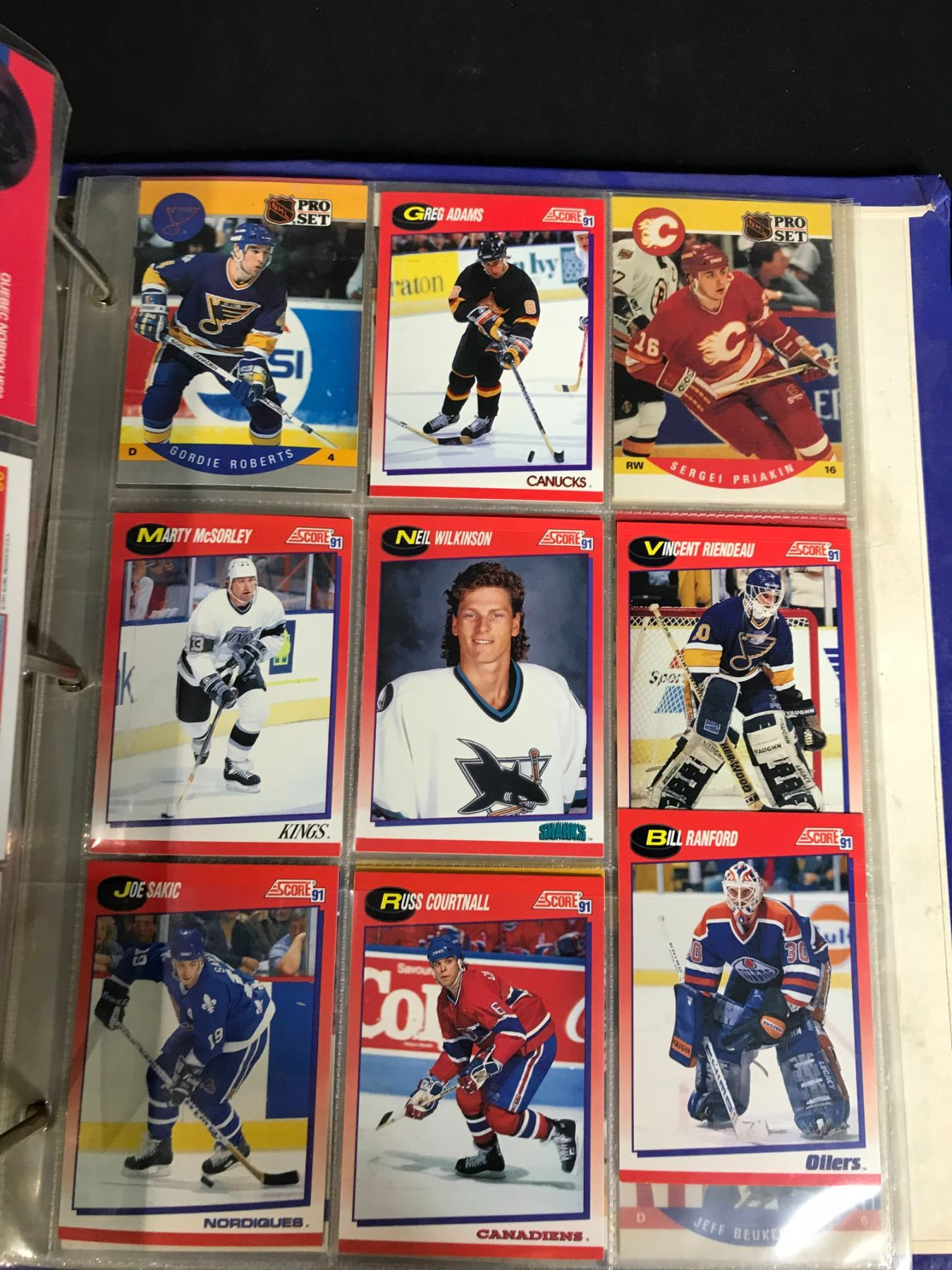 BINDER OF ASSORTED COLLECTABLE SPORTS CARDS BRANDS INCLUDE; TOPPS, PROSET, SCORE AND MORE