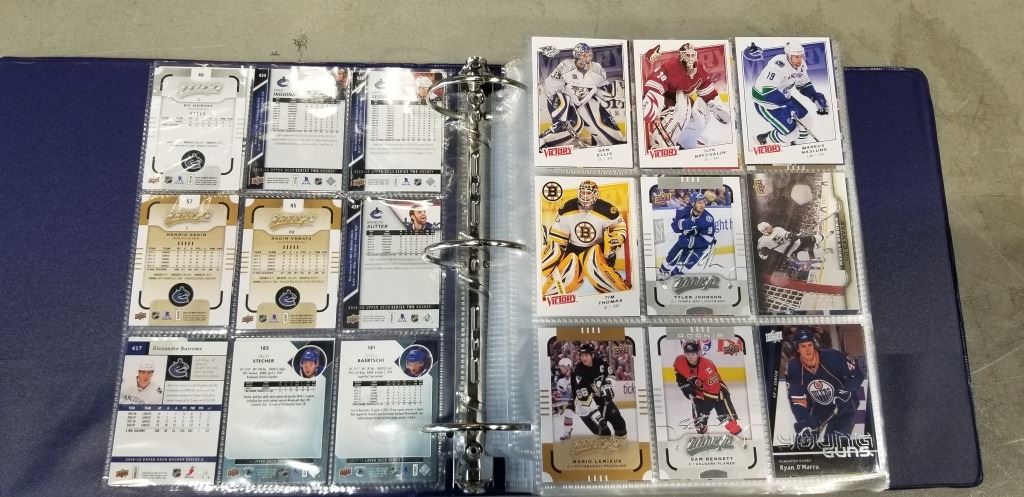 BINDER OF ASSORTED UPPER DECK, PARKHURST AND SCORE HOCKEY CARDS, 2009-2018, APPROX. 600 CARDS