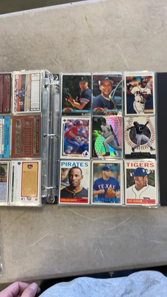 BINDER OF BASEBALL CARDS WITH SPORTS ILLUSTRATED MAGAZINES INCLUDING GEORGE BRETT, WALTER PAYTON AND MORE