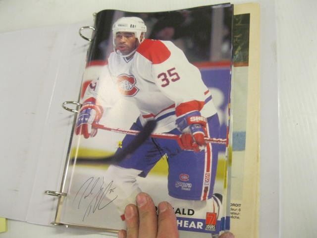 BINDER OF MONTREAL CANADIENS STAT SHEETS, PHOTOS (SOME SIGNED) & ANDRE THE GIANT PICTURE, ETC.