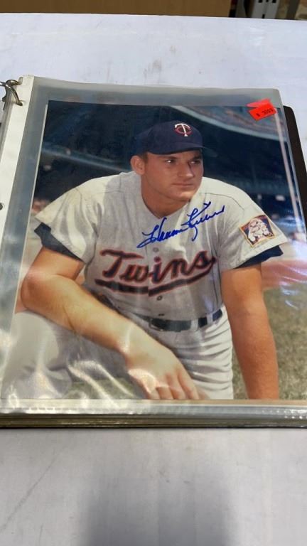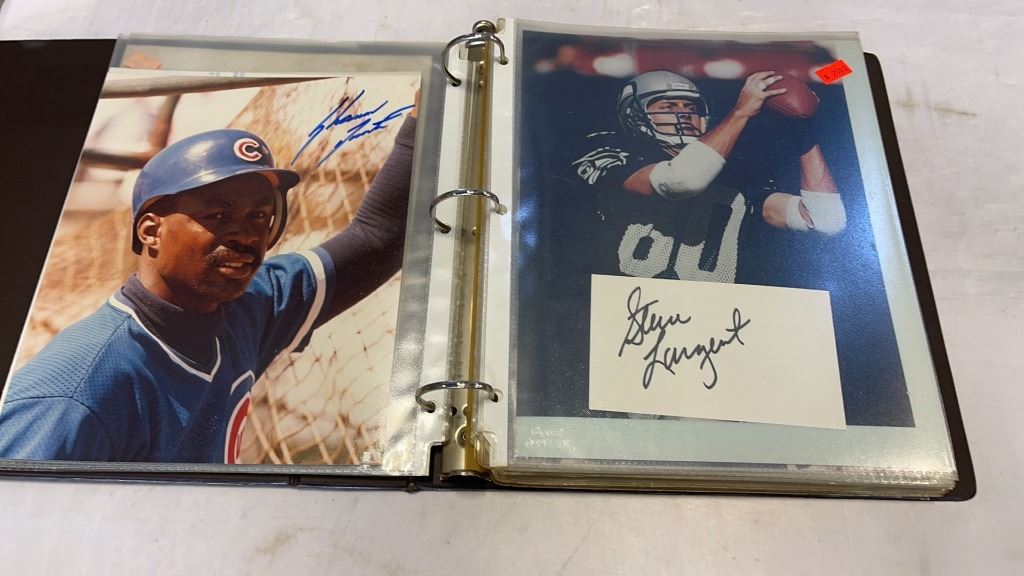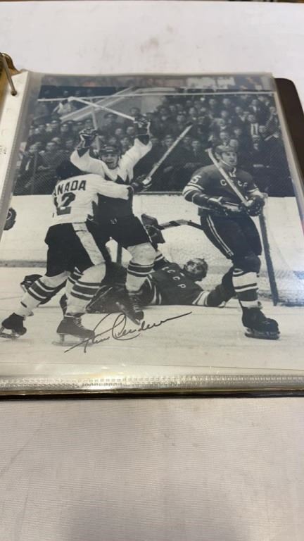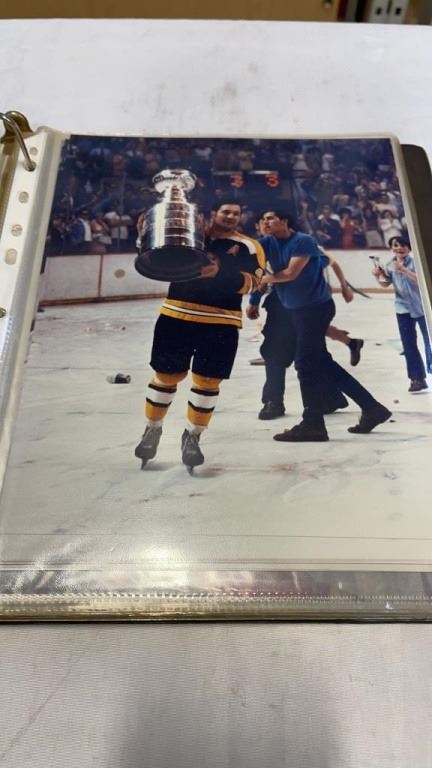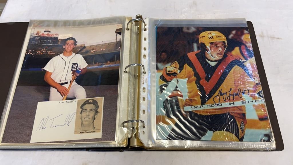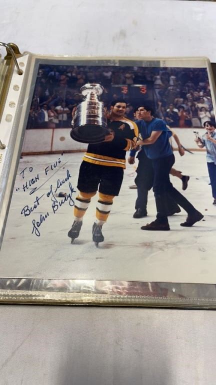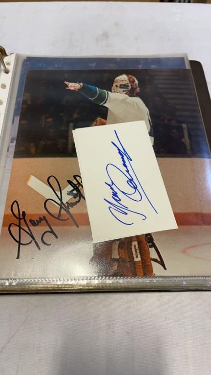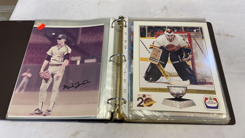 BINDER OF SIGNED SPORTS PICTURES MEMORABILLIA - CANUCKS, BASEBALL AND FOOTBALL AUTOGRAPHS