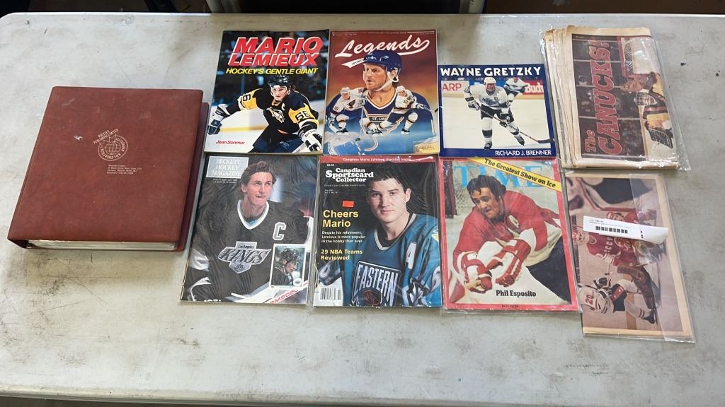 BINDER OF UPPER DECK HOCKEY CARDS AND HOCKEY MAGAZINES