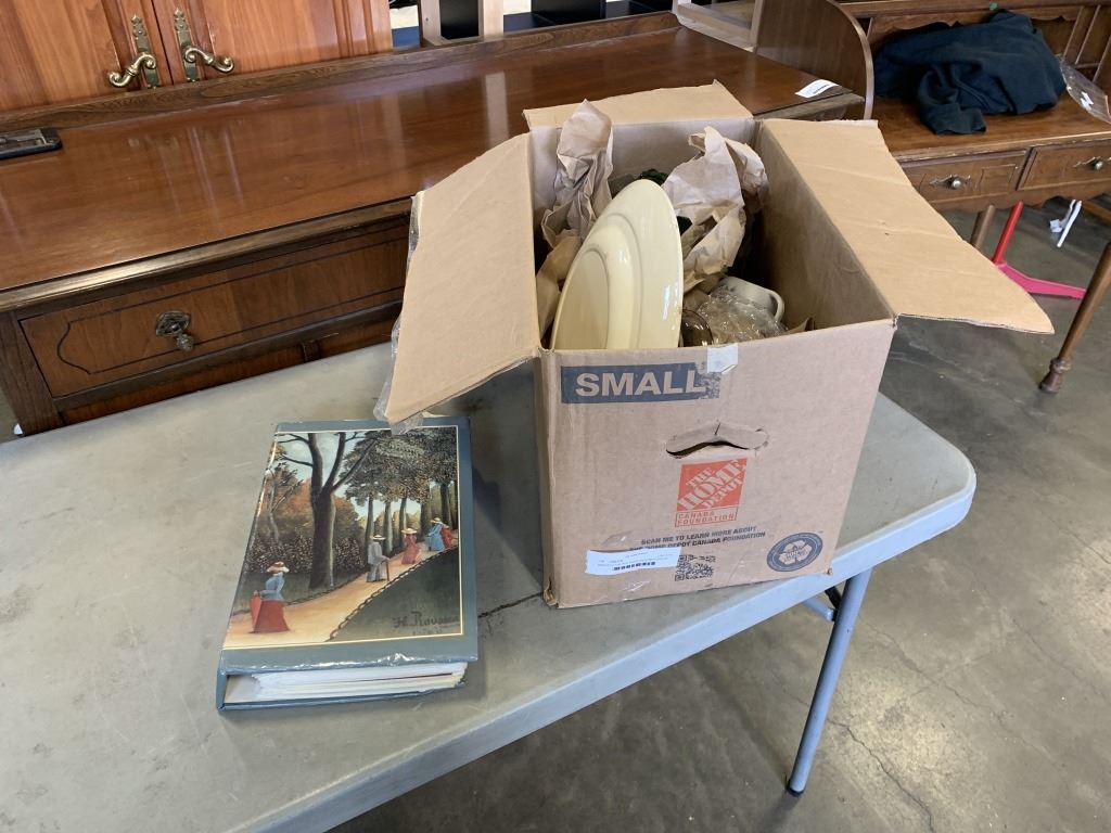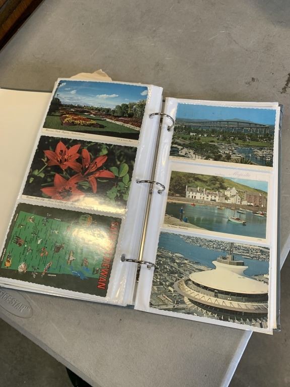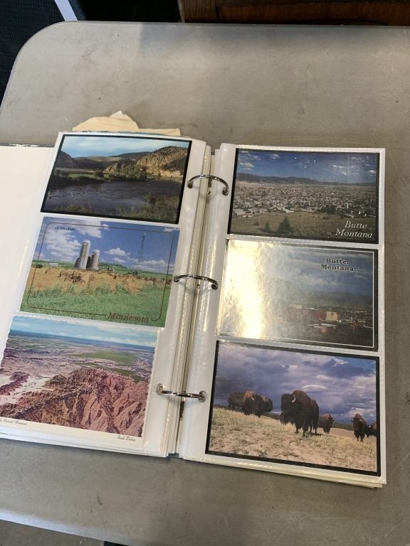 BINDER OF VINTAGE POSTCARDS WITH BOX OF COLLECTIBLES