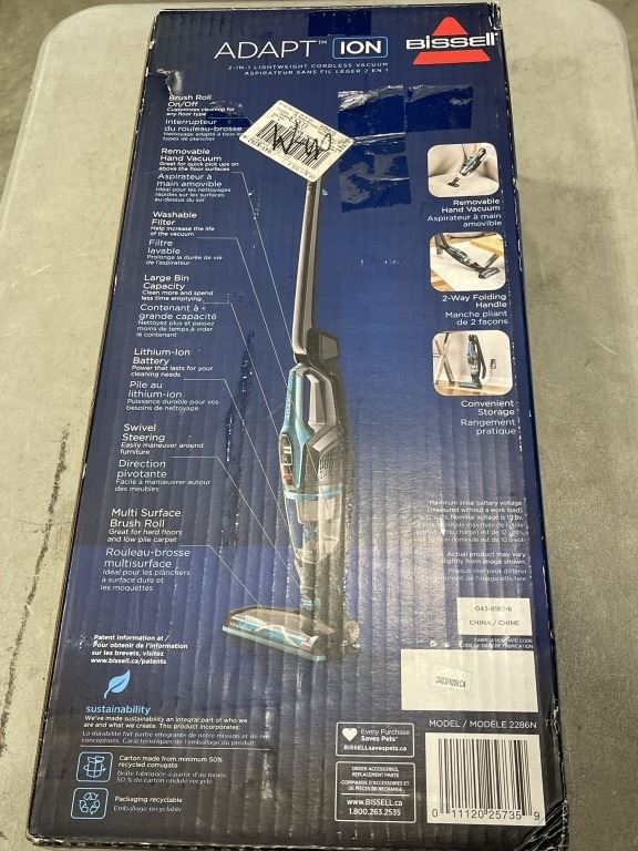 BISSELL ADAPT LI-ION MAX 2 IN 1 LIGHTWEIGHT CORDLESS STICK VACUUM - TESTED WORKING, RETAIL $189