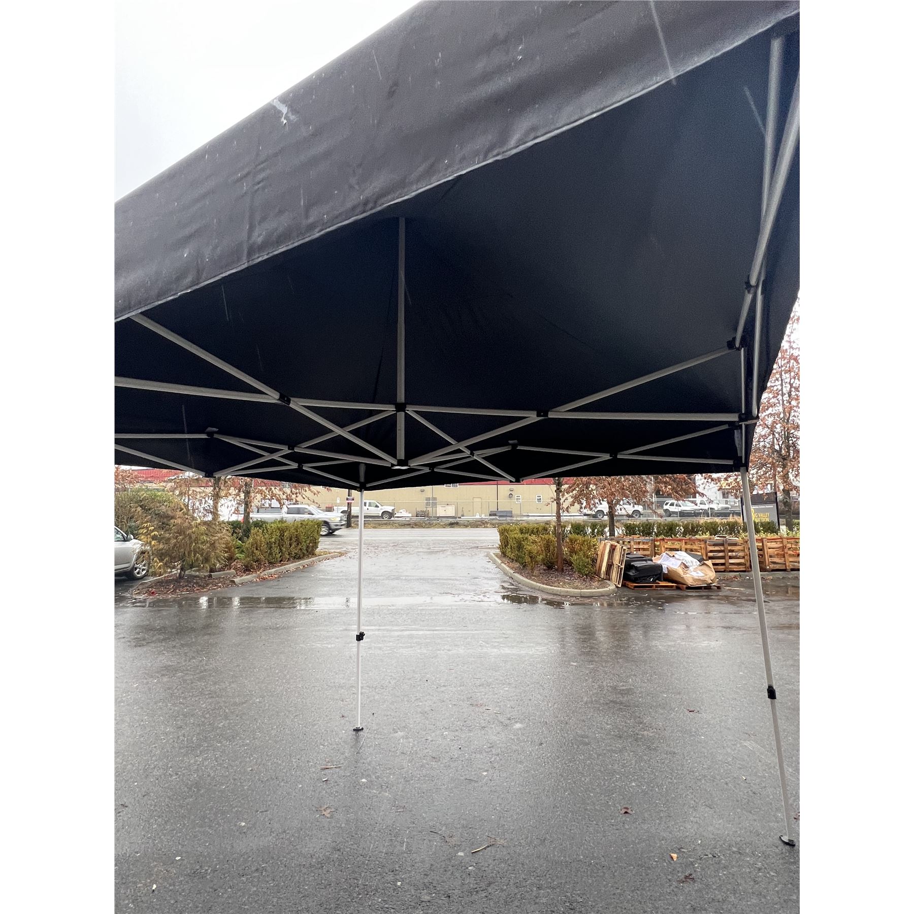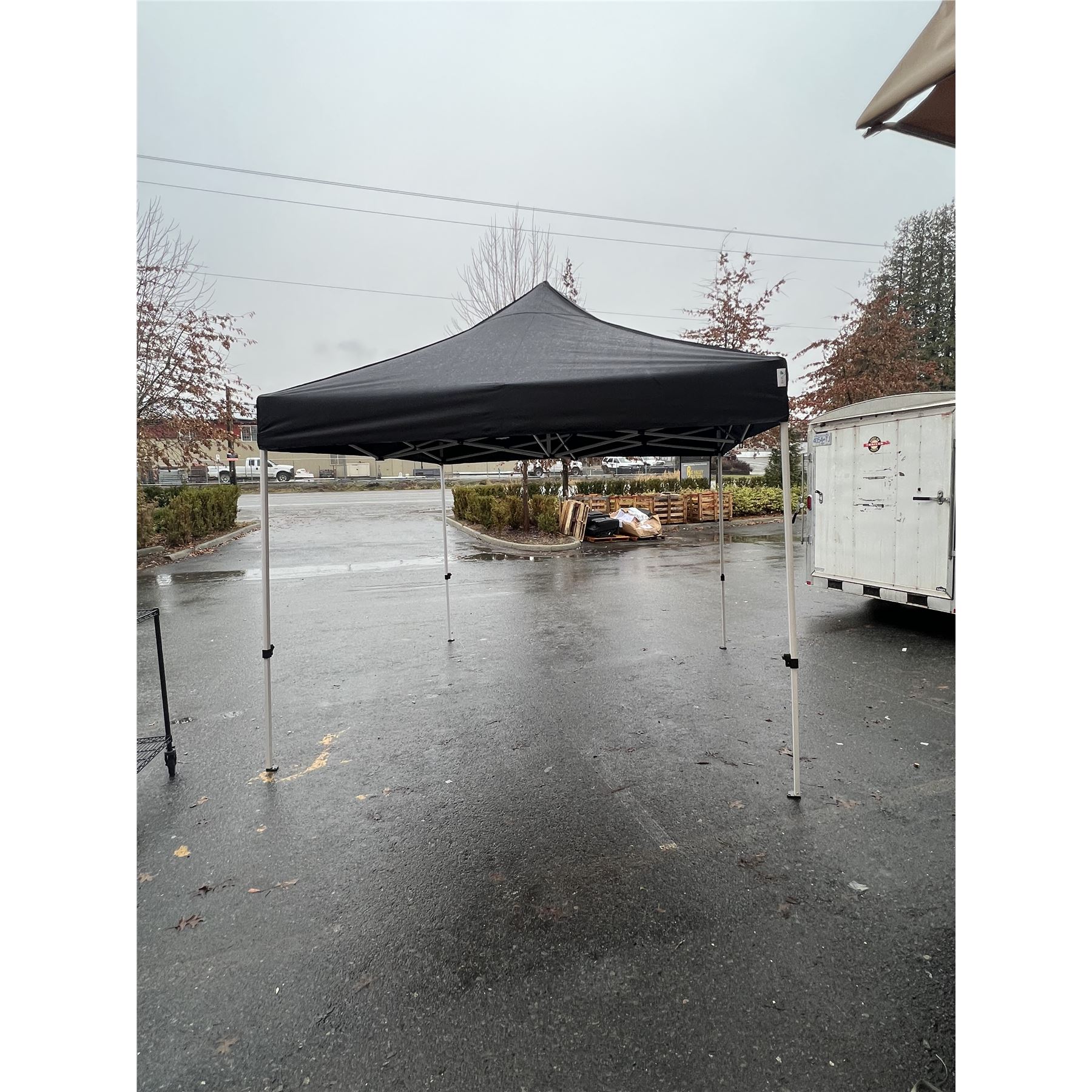 BLACK 10x10 INDUSTRIAL TENT W/ POWDER COATED STEEL FRAME AND HEAVY NYLON CANOPY - RETAIL $499