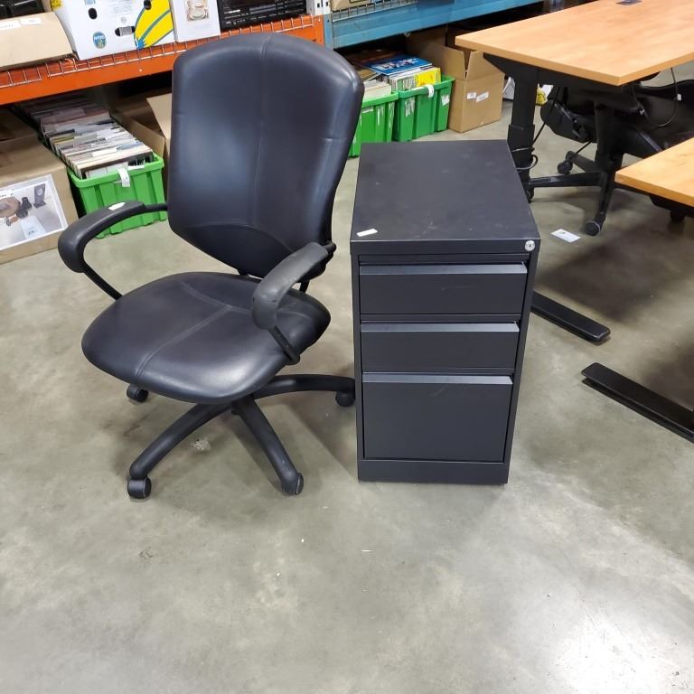 BLACK 2 DRAWER FILING CABINET WITH GAS LIFT OFFICE CHAIR