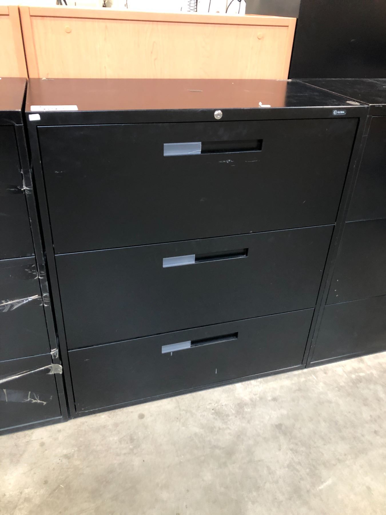 BLACK 3 DRAWER LATERAL FILE CABINET