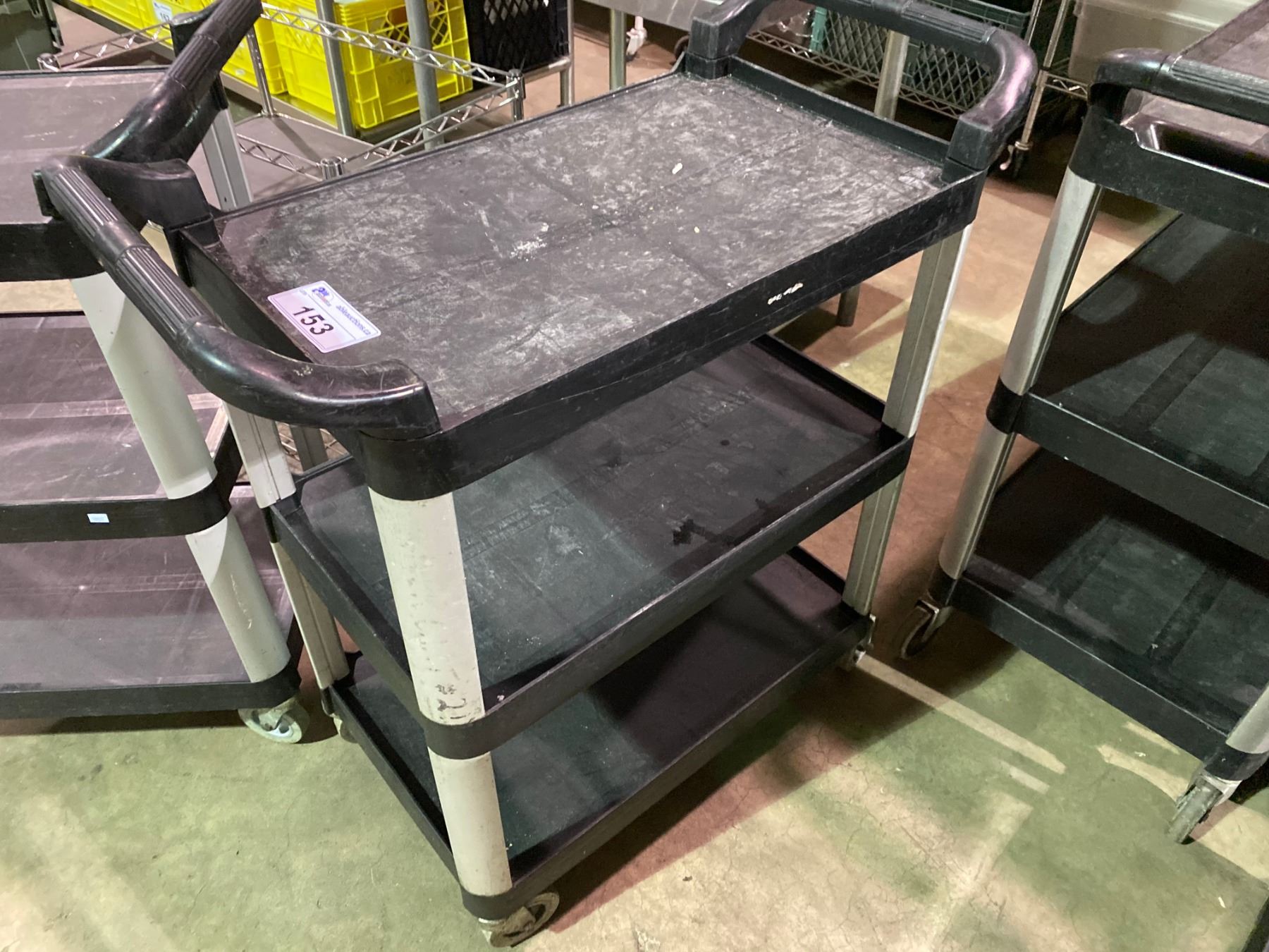 BLACK 3 TIER MOBILE RUBBERMAID PRODUCT CART