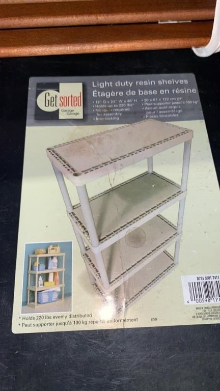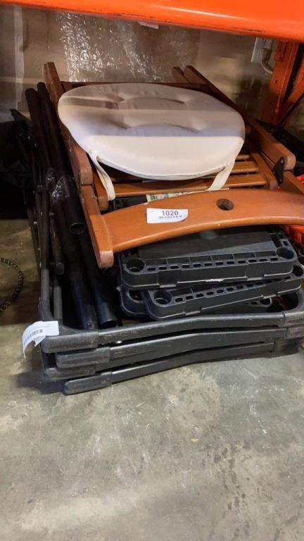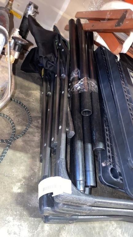 BLACK 3 TIER SHELF AND 2 FOLDING CAMP CHAIRS
