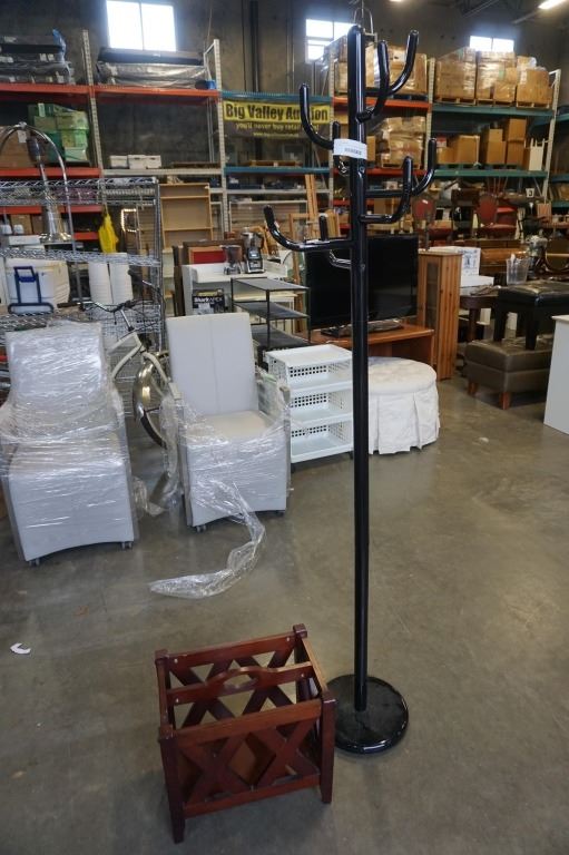 BLACK 71 INCH COAT TREE AND MAGAZINE RACK