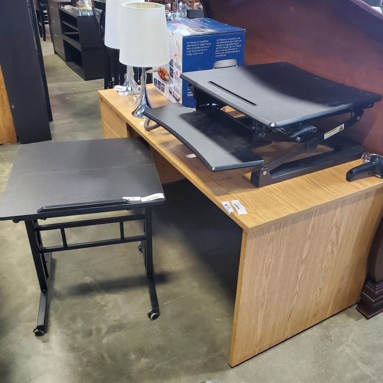 BLACK ADJUSTABLE GAS LIFT TABLE RISER WITH TRAY AND BLACK ADJUSTABLE TWO SECTION ONE TILT TABLE RISE