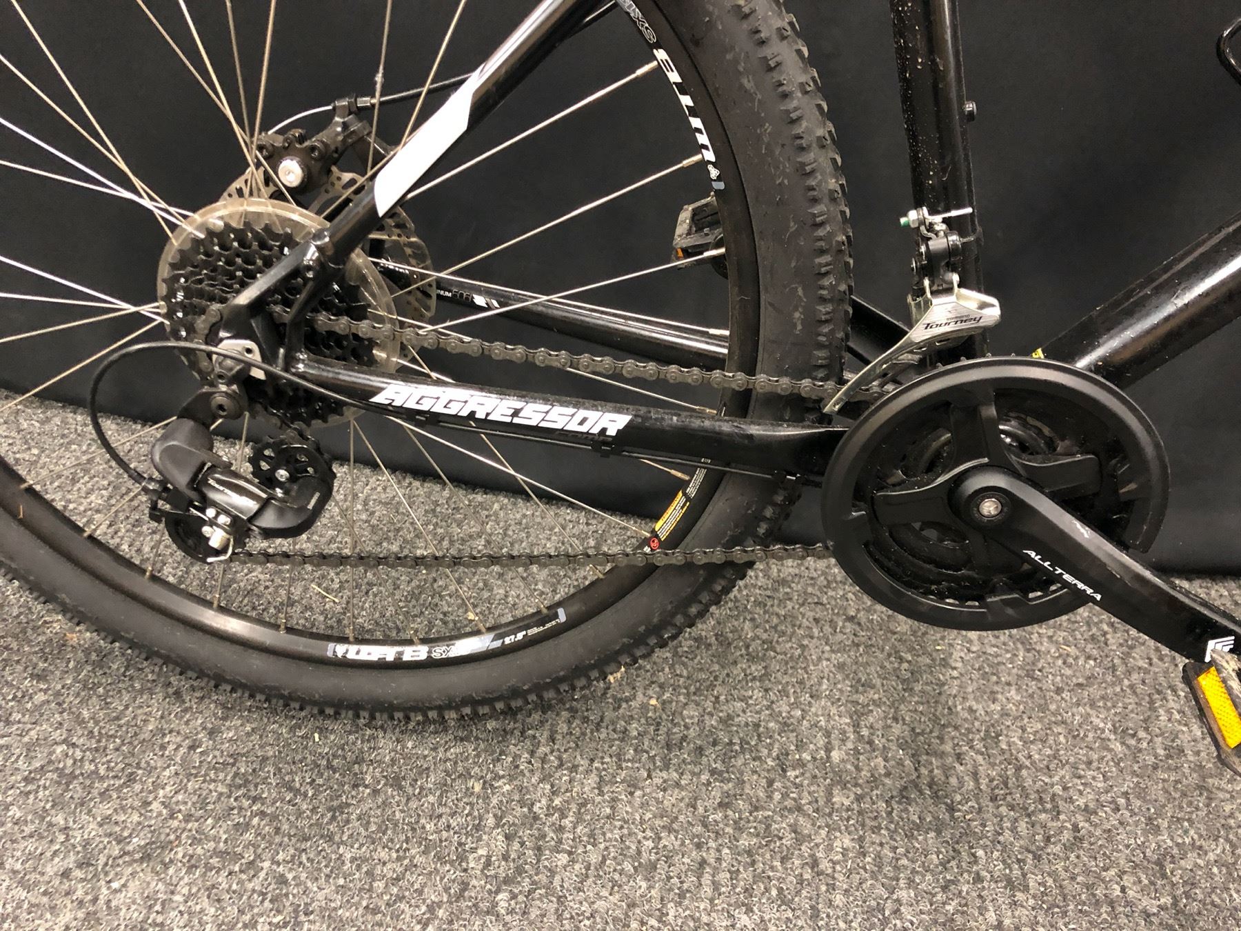 BLACK AGGRESSOR COMP 21 SPEED GT FRONT SUSPENSION MOUNTAIN BIKE WITH FRONT AND REAR DISC BRAKES, XL FRAME SIZE
