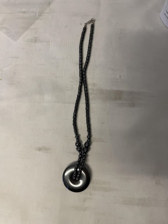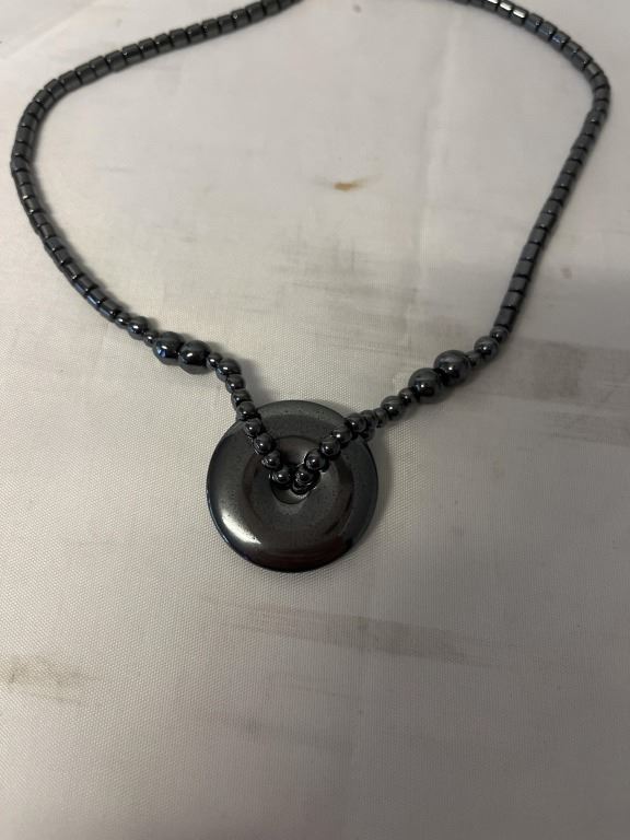 BLACK ALASKAN DIAMOND HEMETITE PENDANT BEADS NECKLACE