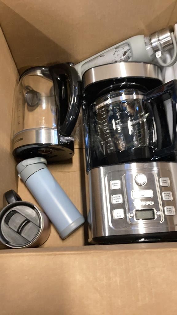 BLACK AND DECKER TOASTER OVEN, CUISINART TOASTER, ELECTRIC KETTLE, INSULATED TRAVEL MUG AND WATER BO