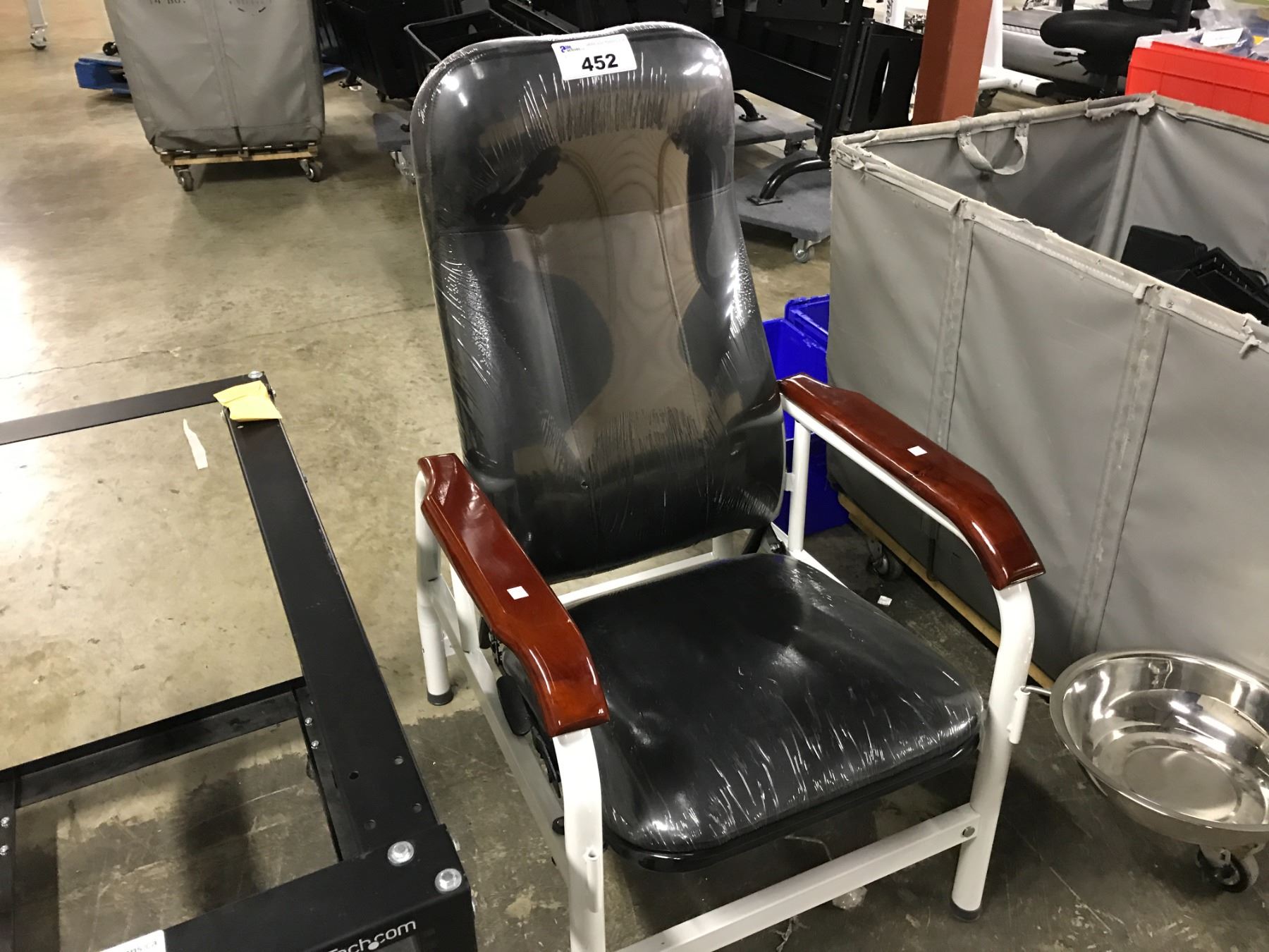 BLACK AND MAHOGANY ARM FIRST AID CHAIR