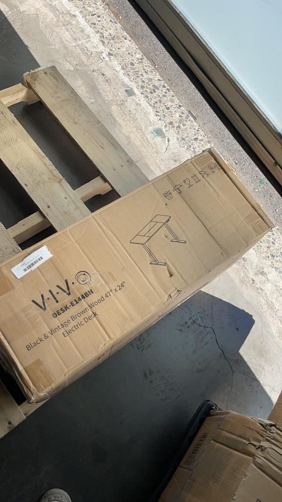BLACK AND VINTAGE BROWN WOOD ELECTRIC DESK 47" X 24"
