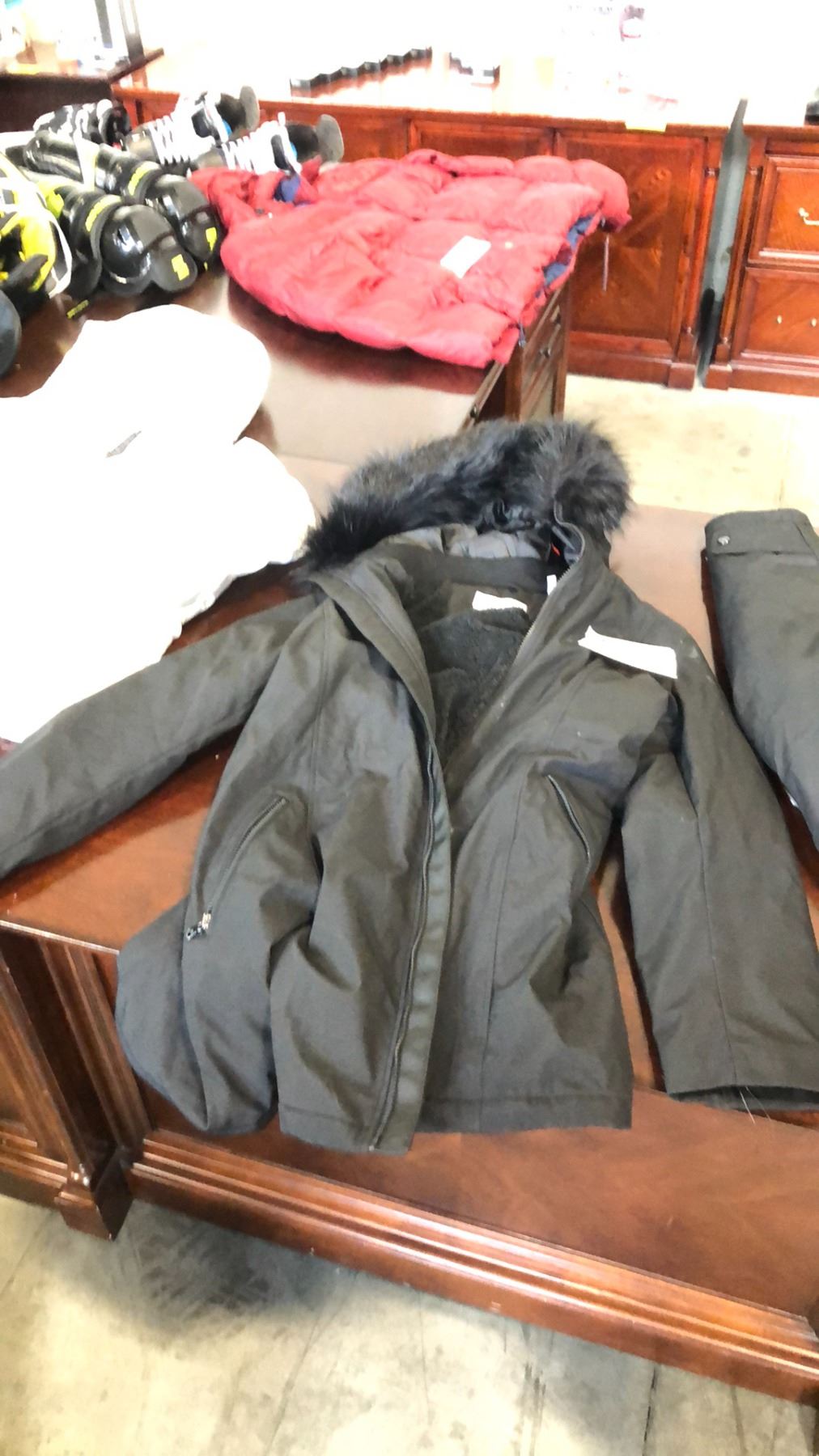 BLACK CALVIN KLEIN JACKET SIZE XL, FAUX FUR-LINED HOOD