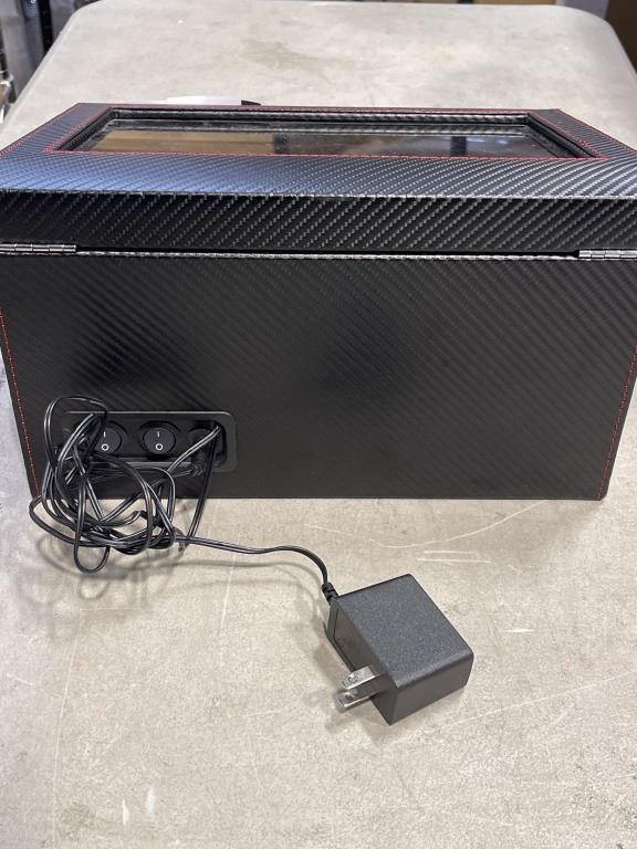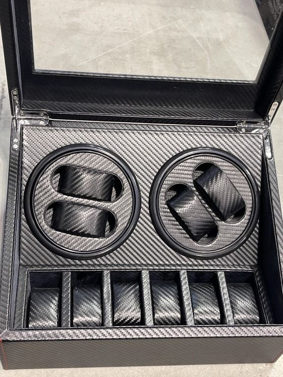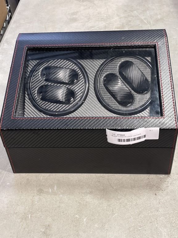 BLACK CARBON LOOK LEATHER AUTOMATIC WATCH WINDER CASE
