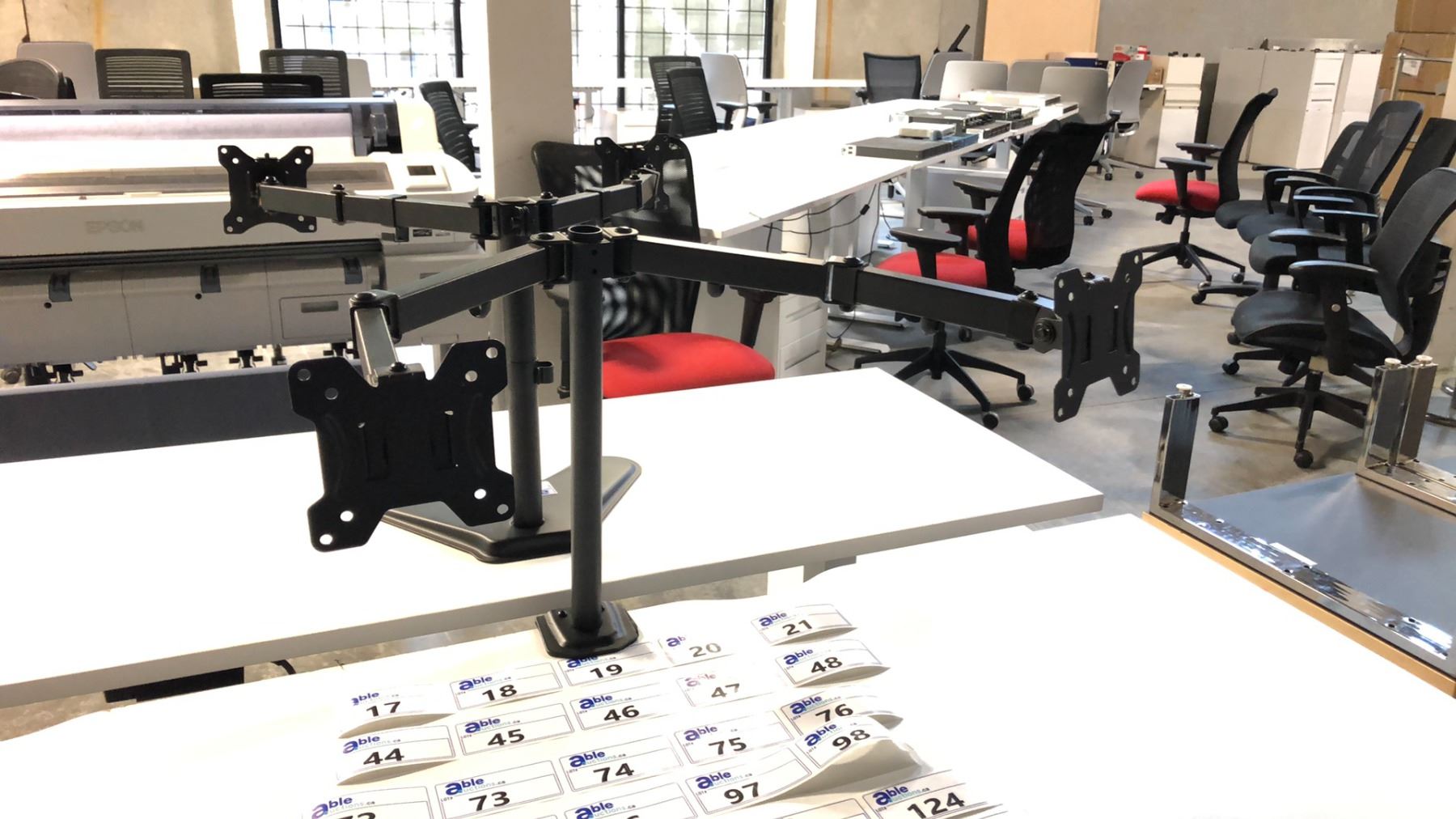 BLACK DESK MOUNTED DUAL MONITOR STAND