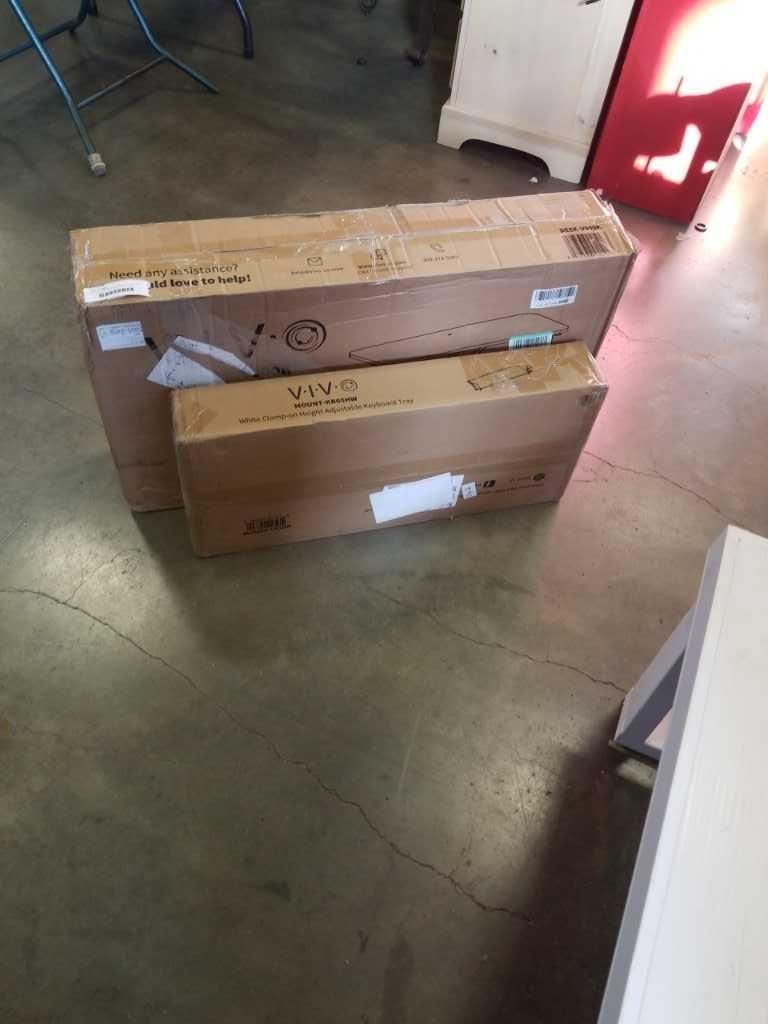 BLACK DESK RISER AND WHITE CLAMP ON ADJUSTABLE KEYBOARD TRAY