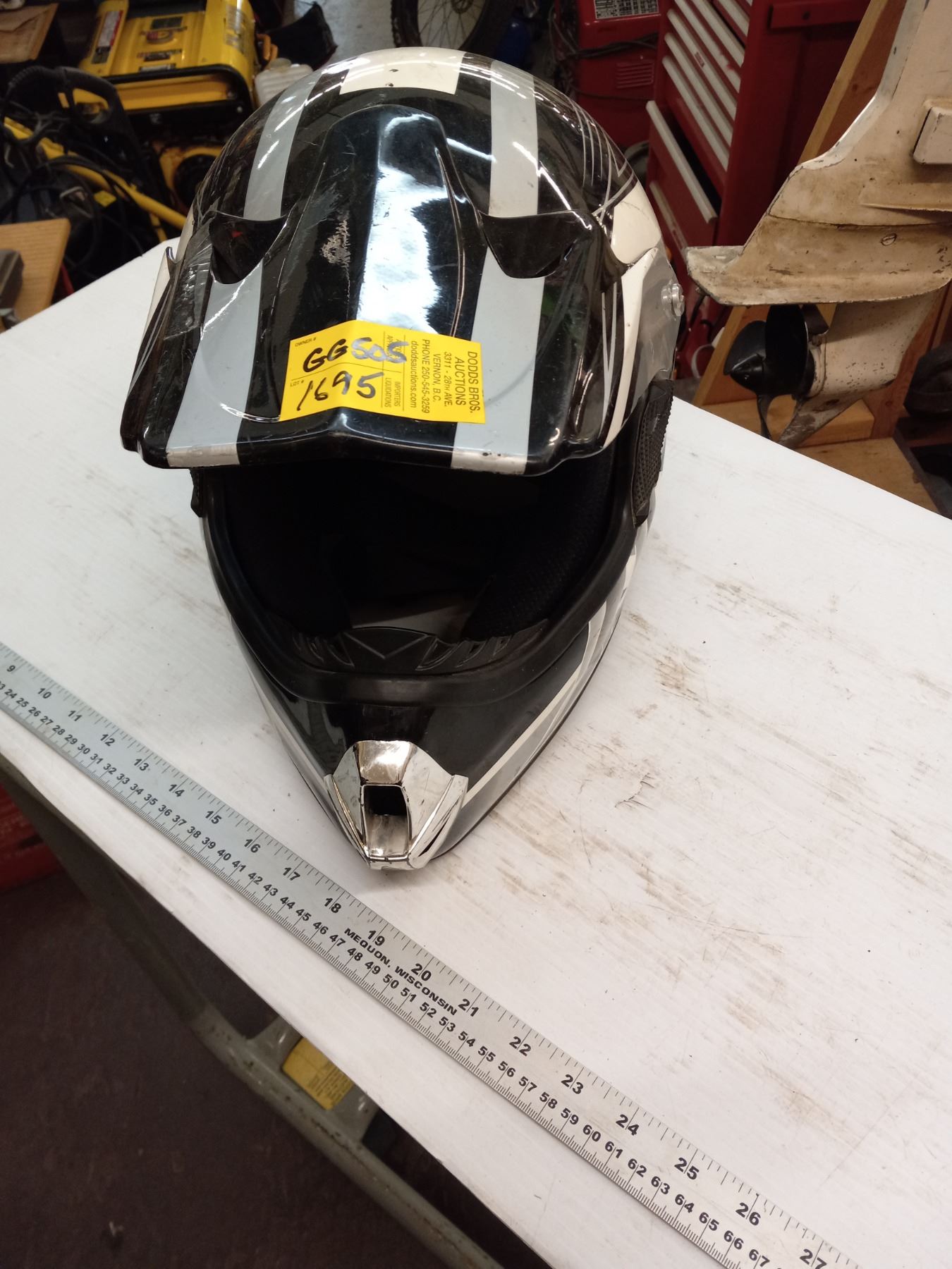BLACK, GREY AND WHITE MOTOR CYCLE HELMET