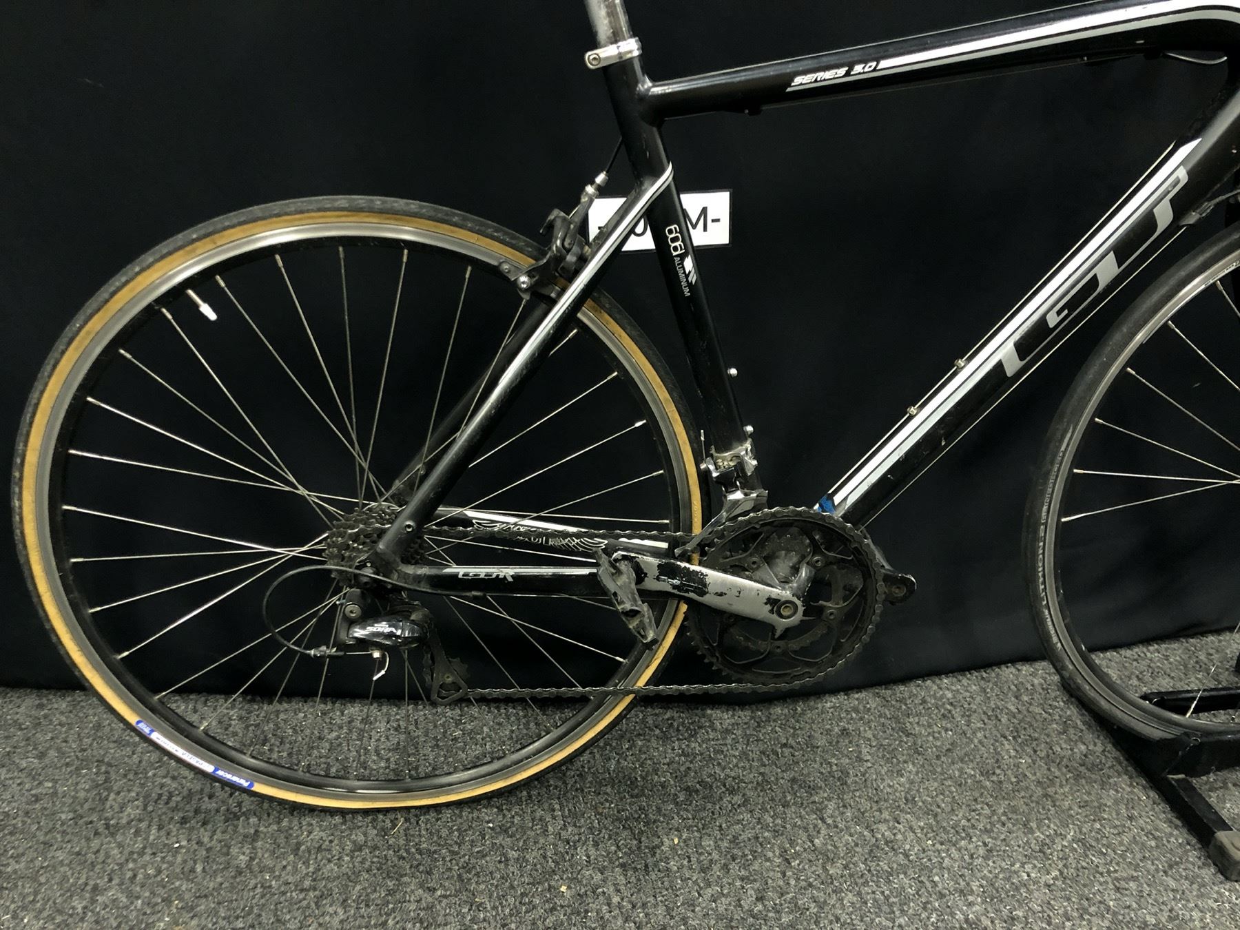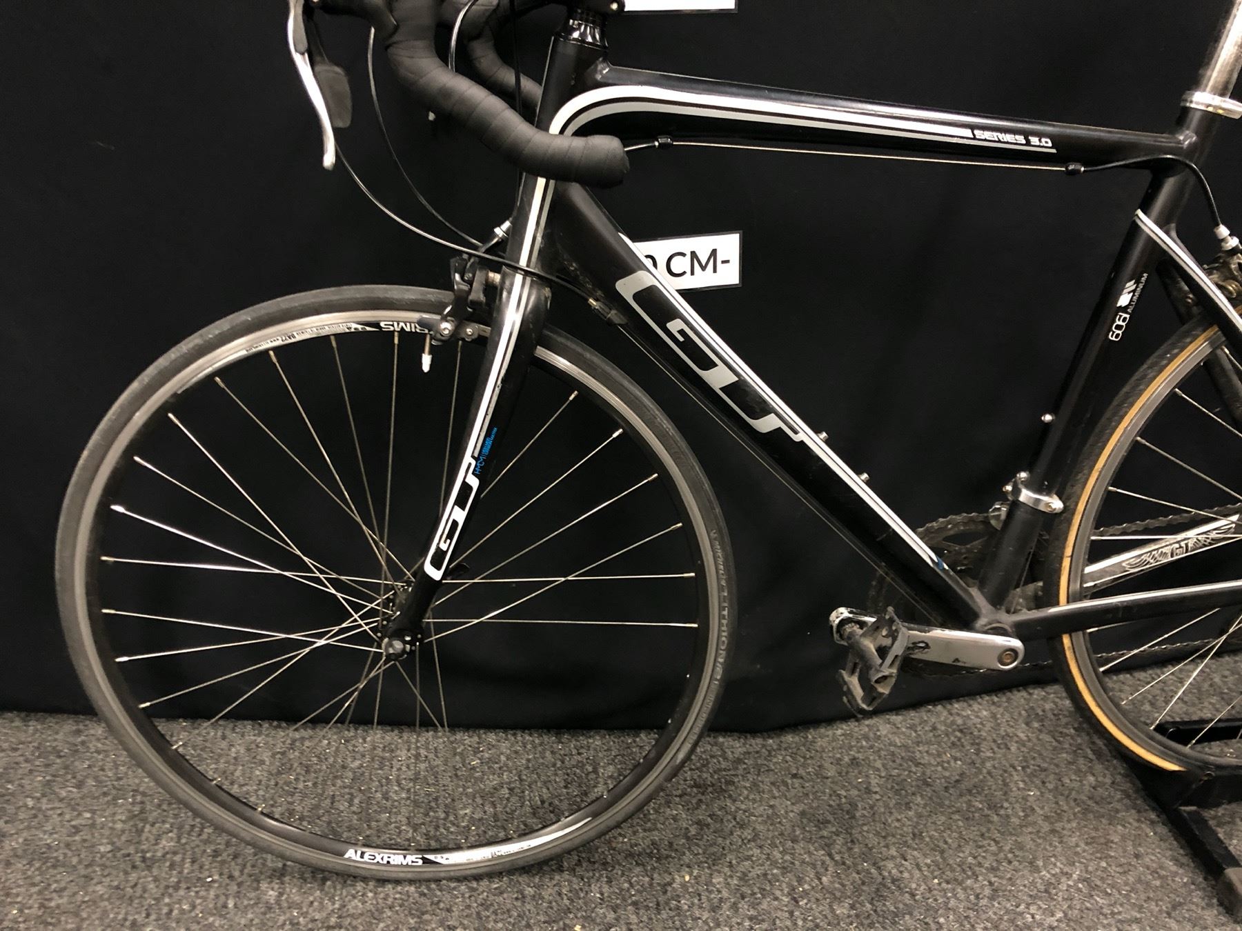 BLACK GT SERIES 3.0 18 SPEED ROAD BIKE, FRONT WHEEL AND BRAKE NEED REPAIR/MAINTENANCE