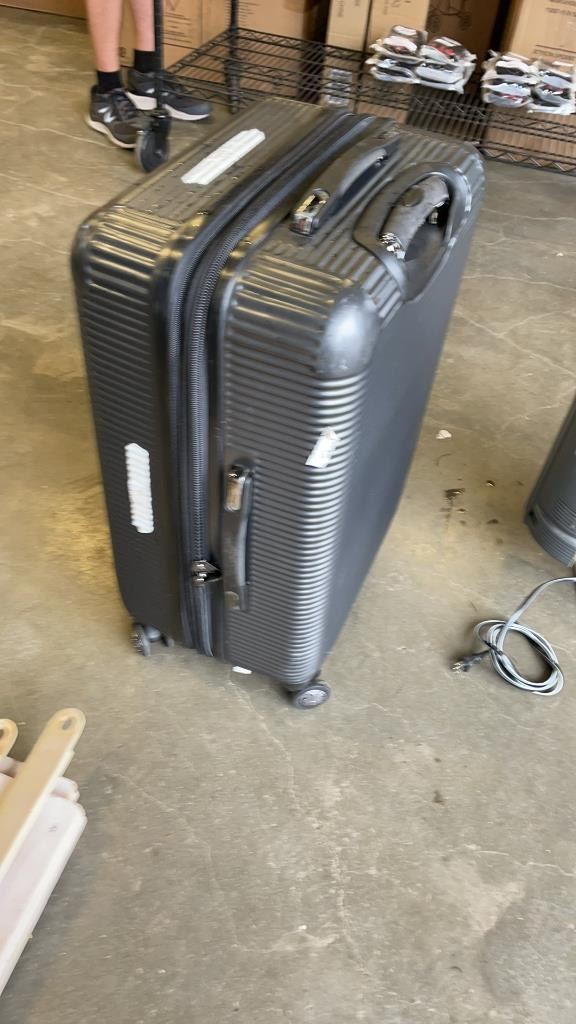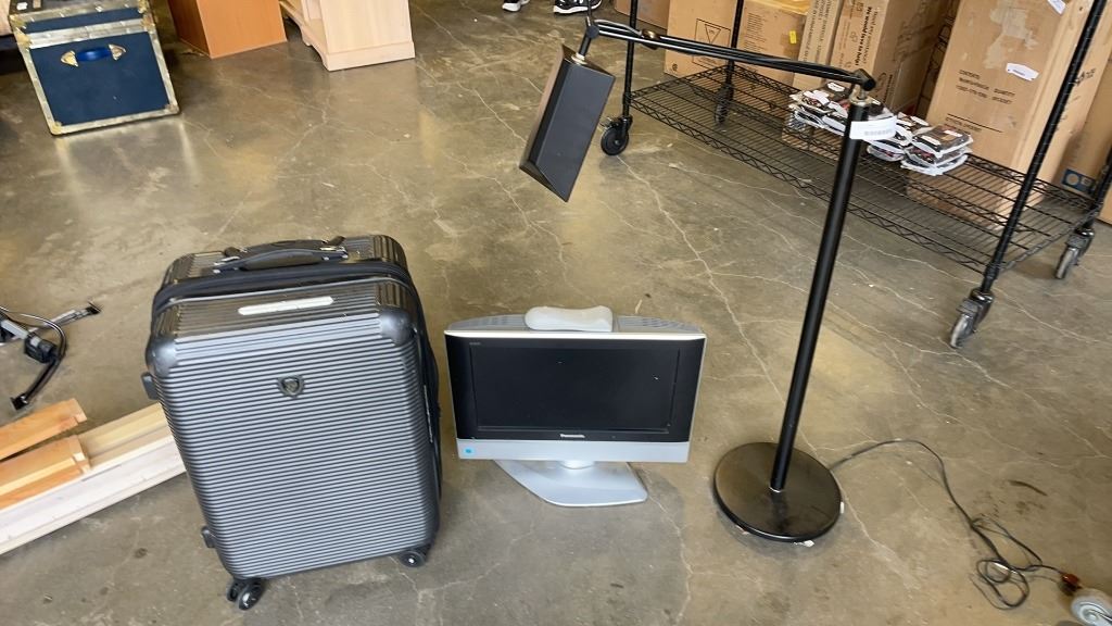 BLACK HARDCASE LUGGAGE WITH PANASONIC TV AND FLOORLAMP