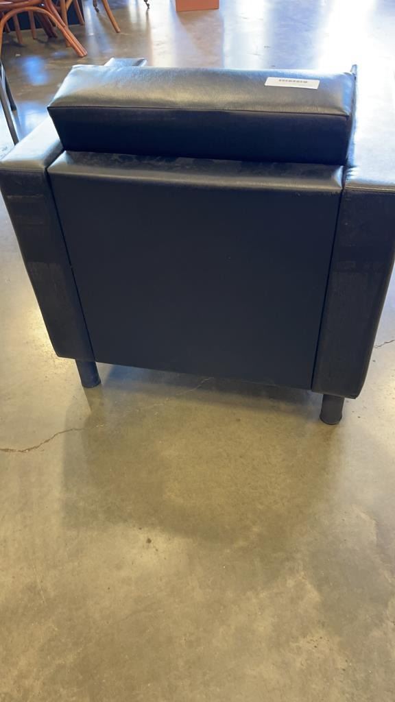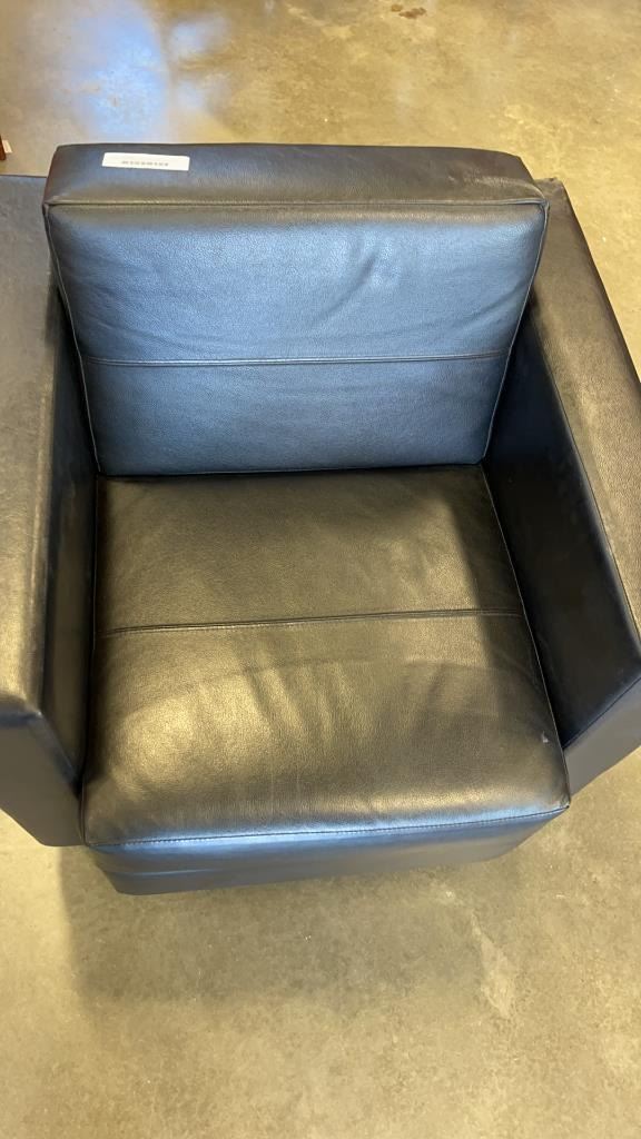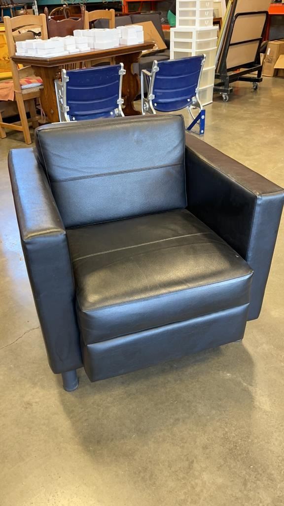 BLACK LEATHER ARMCHAIR NEEDS FOOT REATTACHED