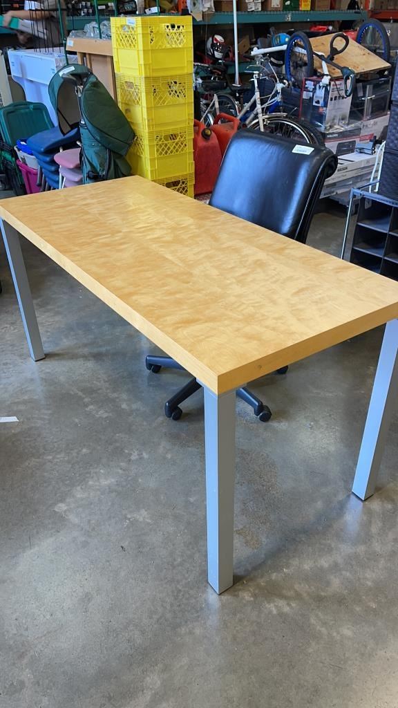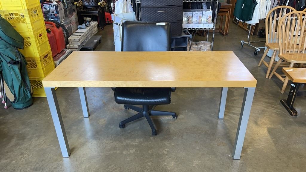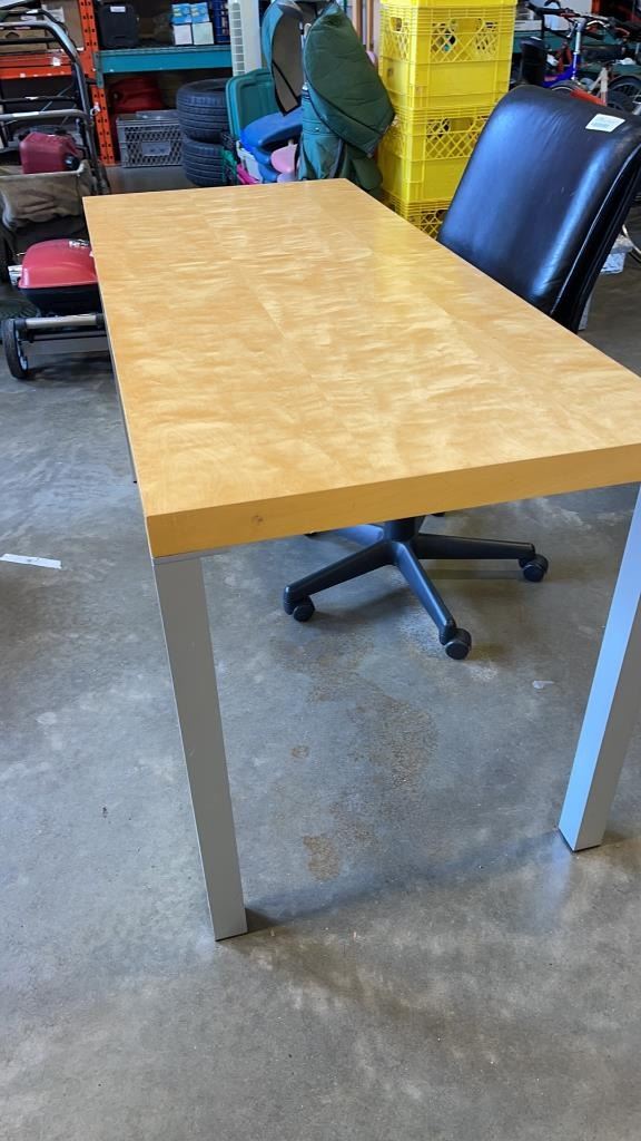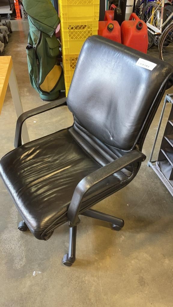 BLACK LEATHER GAS LIFT OFFICE CHAIR WITH DESK