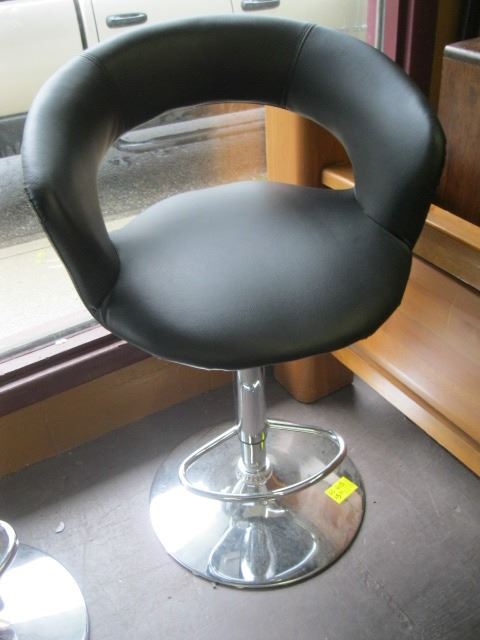 BLACK LEATHER LOOK BAR STOOL WITH CHROME BASE