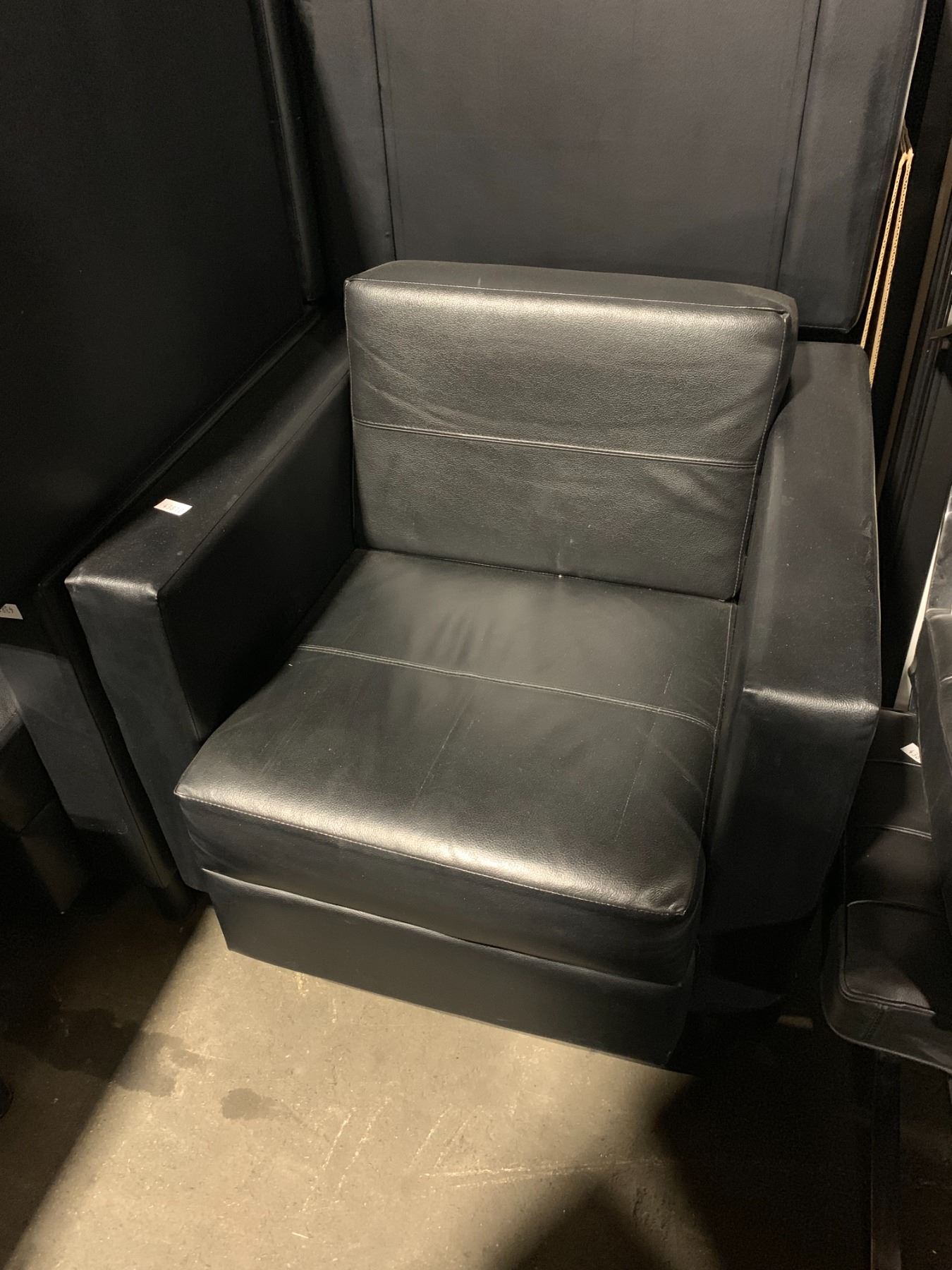 BLACK LEATHER LOOK MODERN RECEPTION ARMCHAIR
