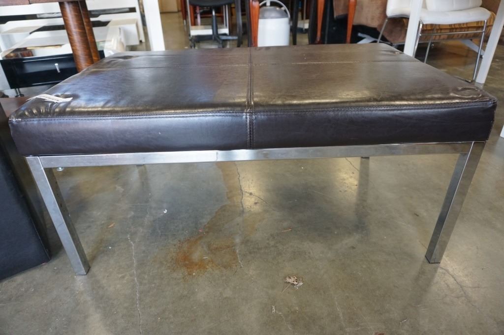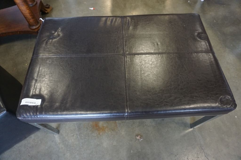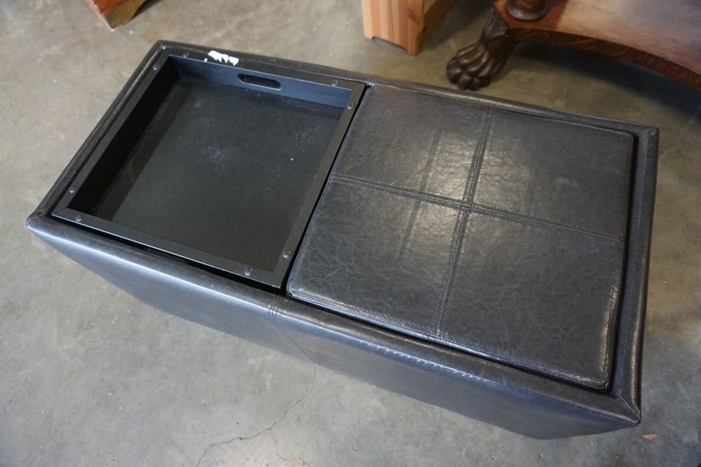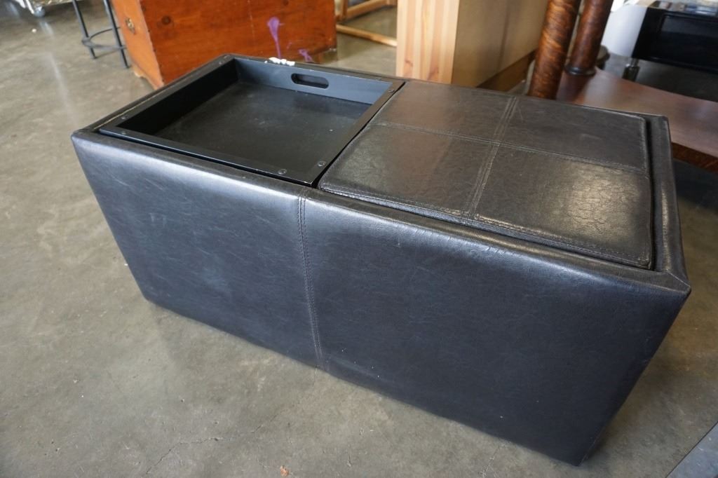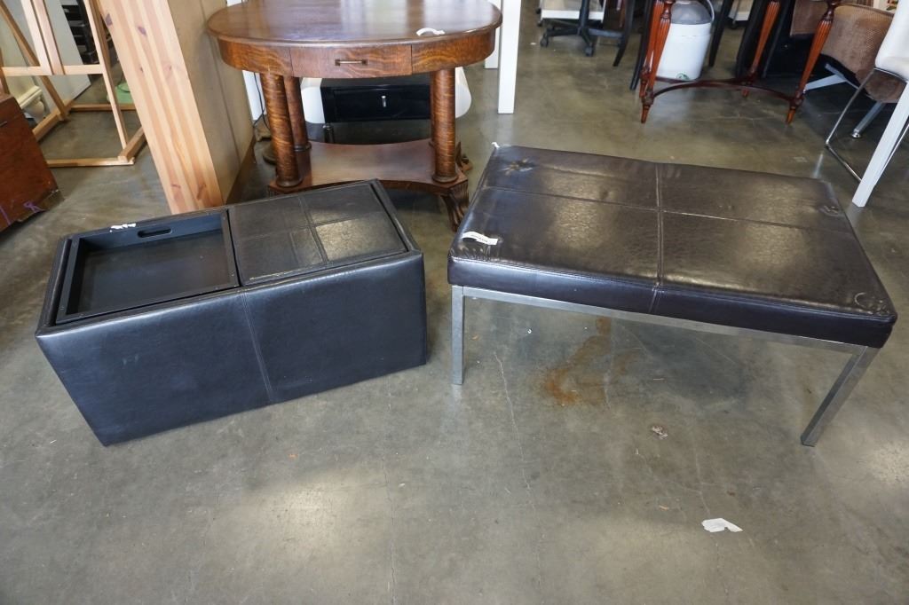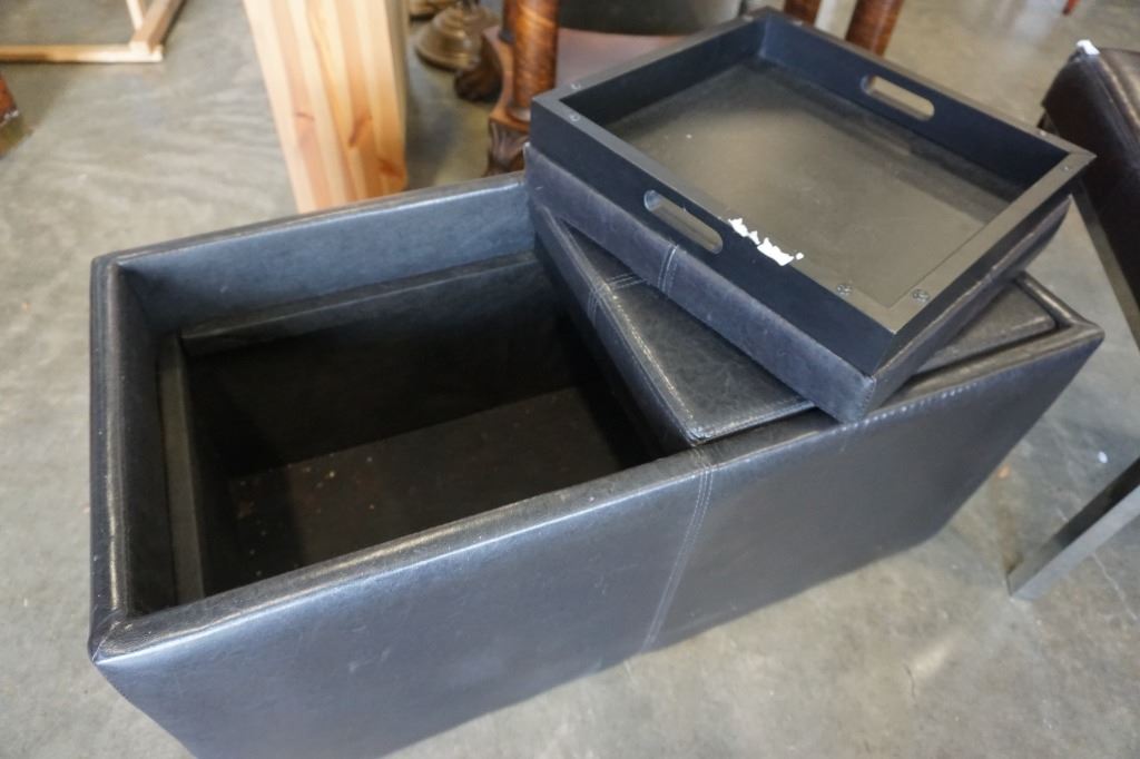 BLACK LEATHER LOOK STORAGE OTTOMAN WITH 2 REVERSIBLE LIDS AND LEATHER LOOK BENCH