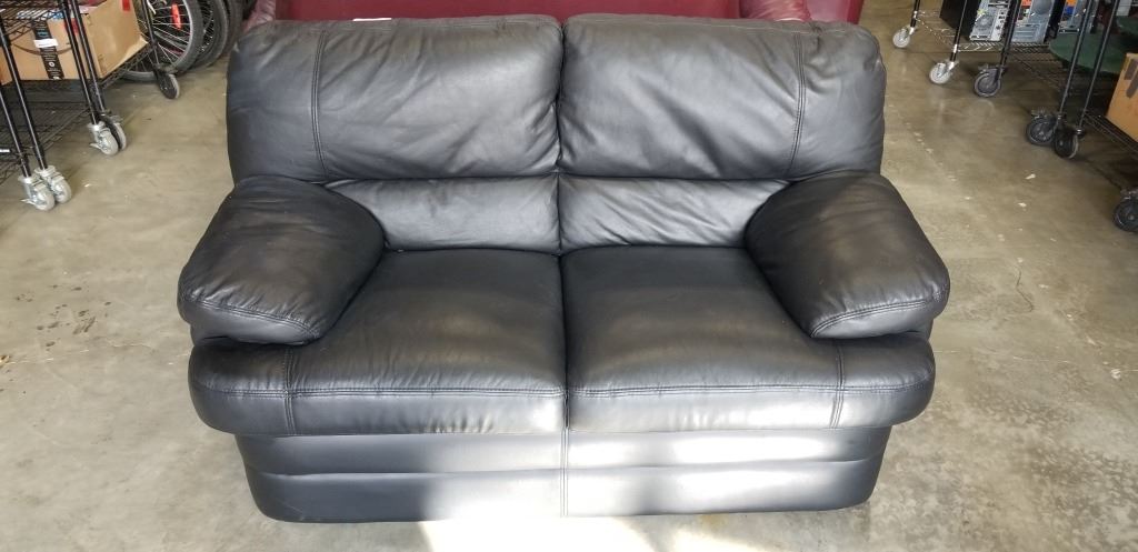 BLACK LEATHER LOVESEAT, GOOD CONDITION