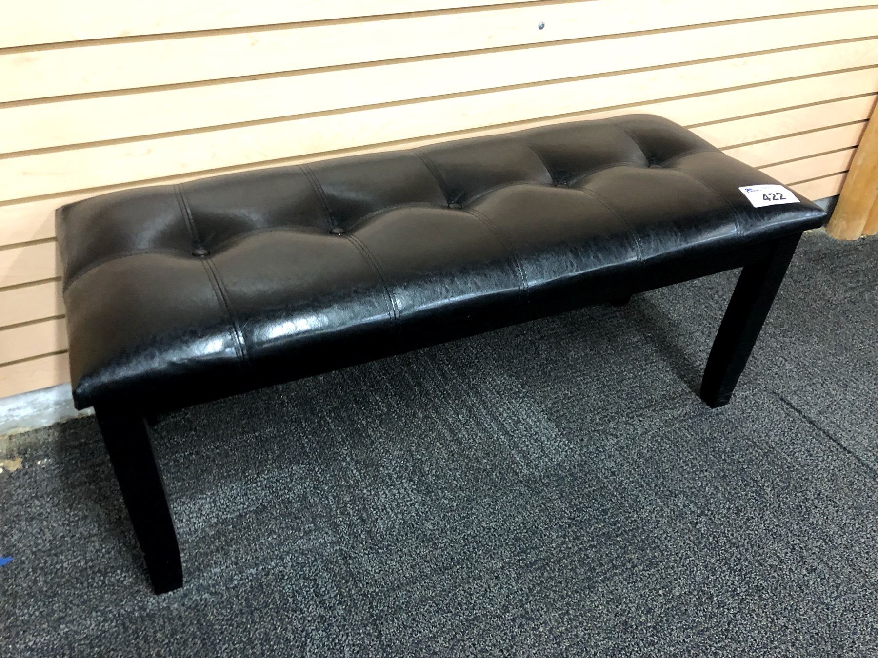 BLACK LEATHERETTE AND WOOD 4' BENCH