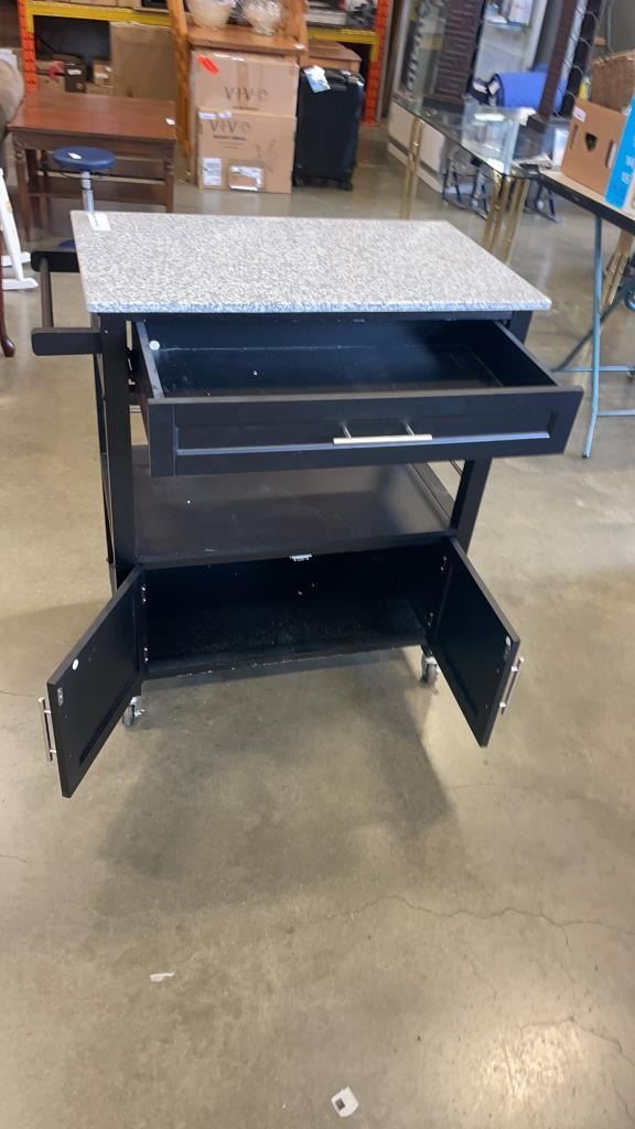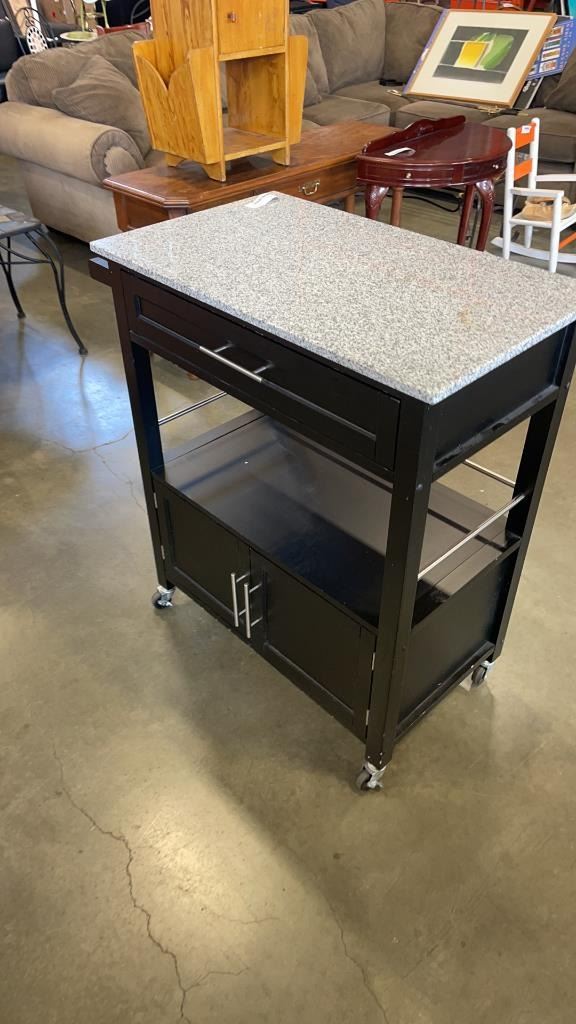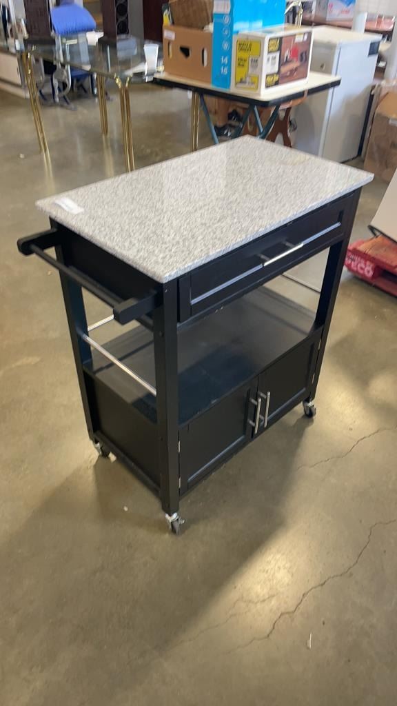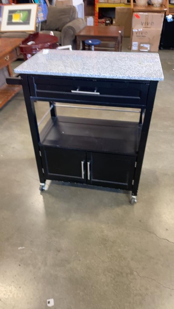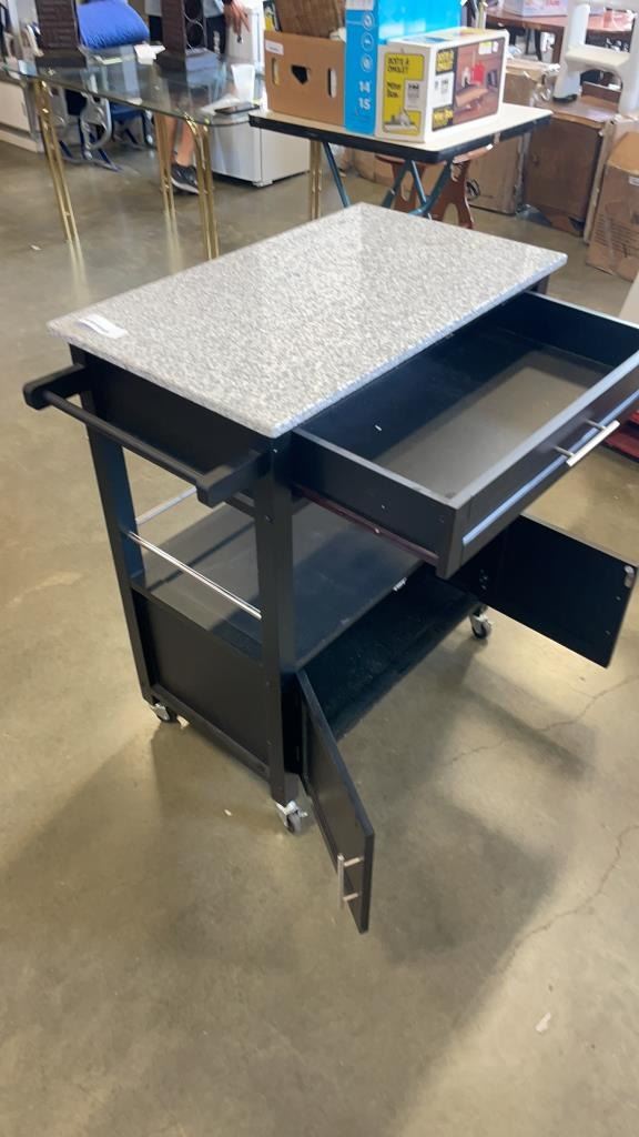 BLACK MARBLE TOP KITCHEN CART