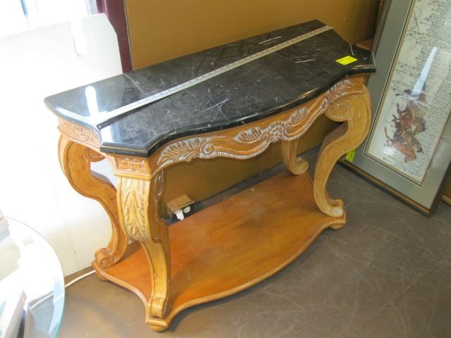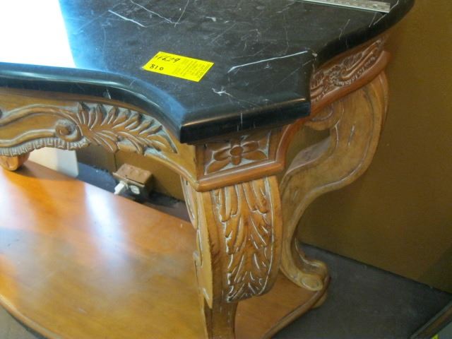 BLACK MARBLE TOP WOOD HALLWAY TABLE