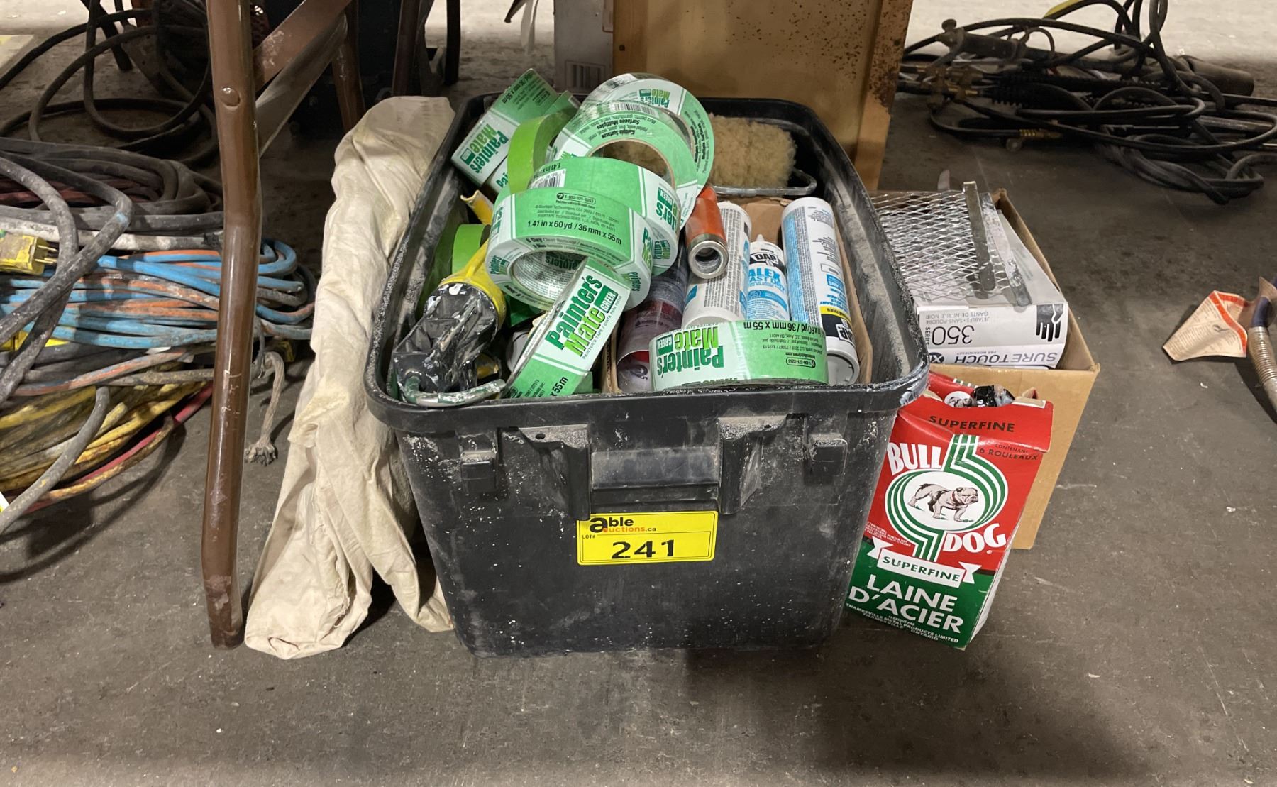 BLACK  PLASTIC BIN OF ASSORTED INDUSTRIAL PAINT PRODUCTS *BIN INCLUDED*