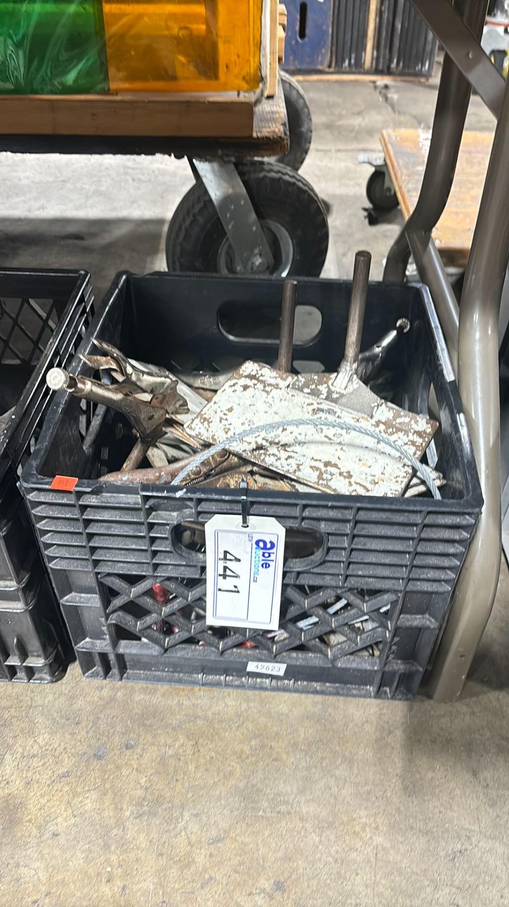 BLACK PLASTIC CRATE OF ASSORTED VICE GRIP FOAM CLAMPS *CRATE INCLUDED*